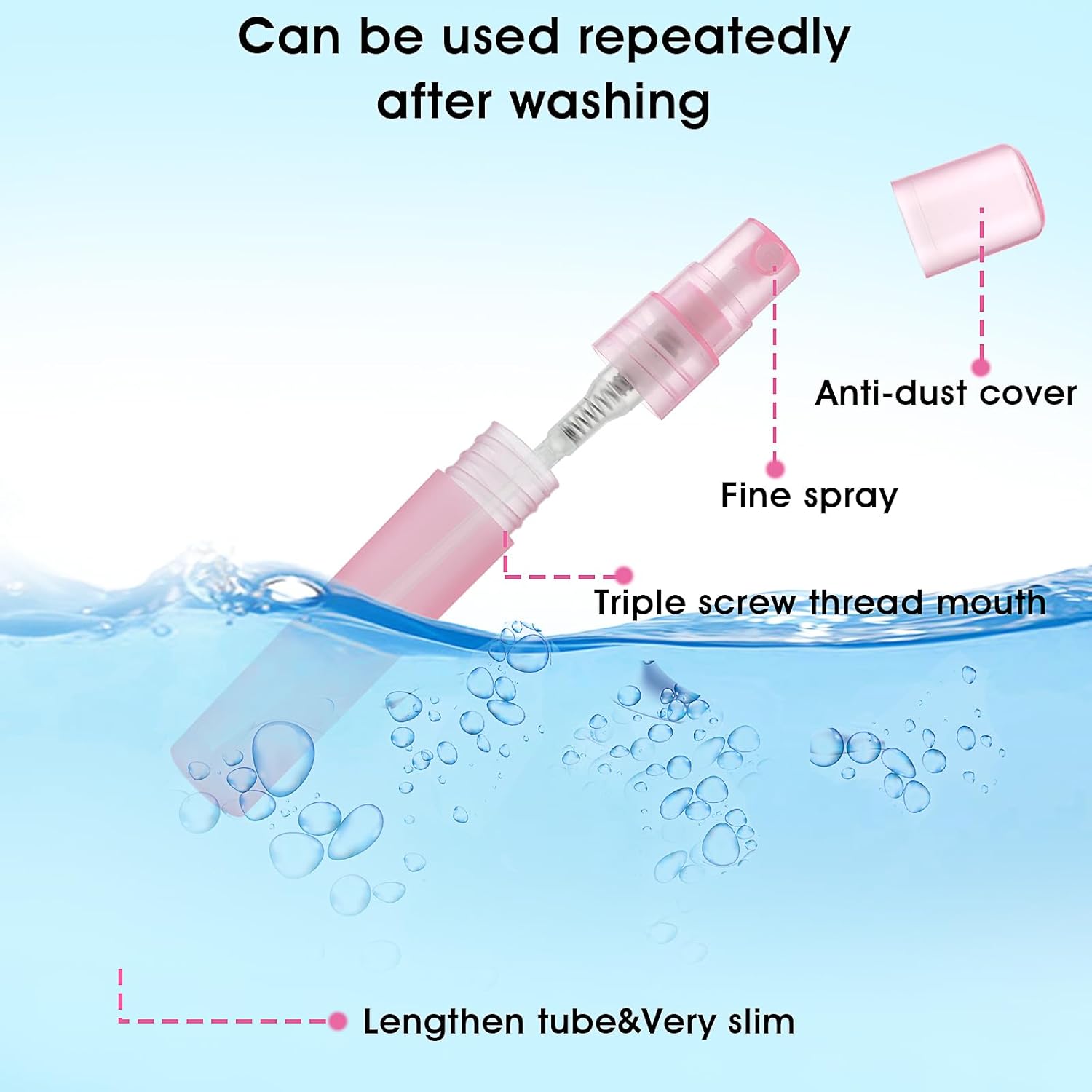Geen lek en fijne nevelontwerp: onze mini-verstuiver heeft een lekvrij ontwerp, heeft schroefdraad en afdichtingen op de fles die lekken effectief kunnen voorkomen en comfortabel dagelijks gebruik bieden. De fles is uitgerust met een nauwkeurig gevormde sproeikop voor effectief spuiten van fijne nevel. Opmerking: Trek tijdens gebruik de dop gewoon stevig naar buiten of duw naar de zijkant om hem gemakkelijk met vloeistoffen te vullen.