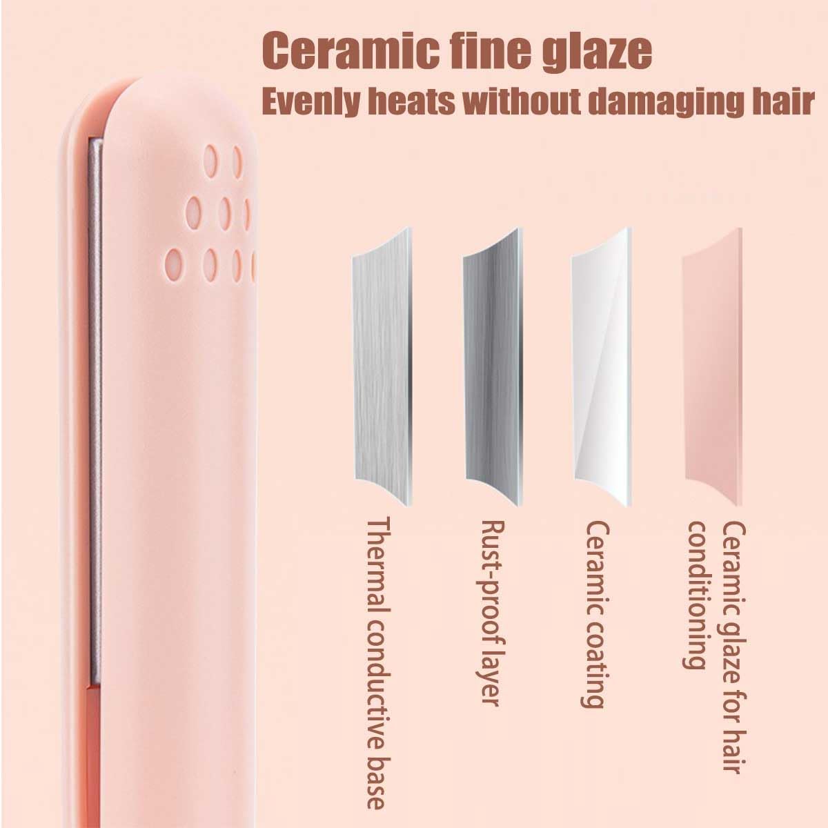 Mini Dual-purpose Curling Iron for Short Hair,Hair Straightener and Curler 2 in 1,Portable Travel Curling Wand,USB Mini Ceramic Curling Iron,Mini Dual-Purpose Curling Iron Cordless