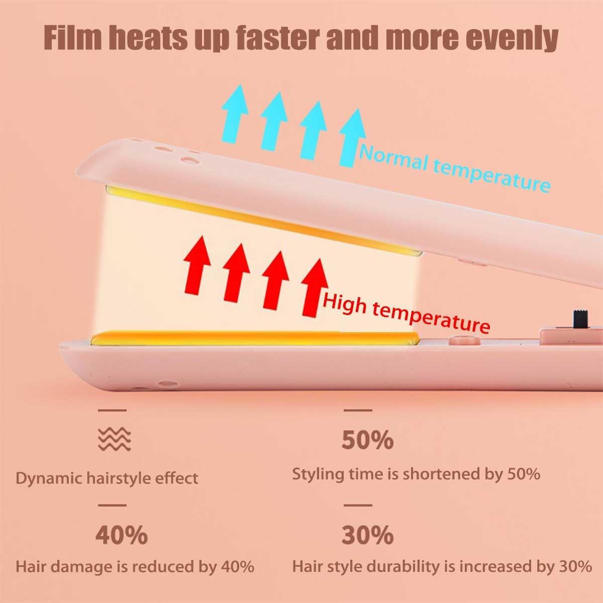 【3D Floating Panel】:The mini dual purpose curling iron adopts a floating heating panel, which can automatically make the hair evenly distributed. This can make the ironing process very smooth and make your hair say goodbye to roughness.