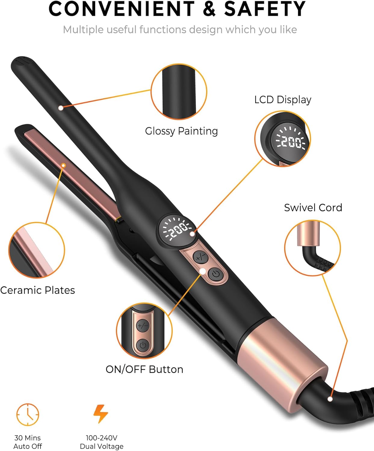 Mini Stijltang Voor Kort Haar, 2 in 1 Glad en Krullend, Met Instelbare Temperatuur 120 ℃ – 180 ℃, Keramiek Stijltang Voor Kleine Reizen, Dubbele Spanning