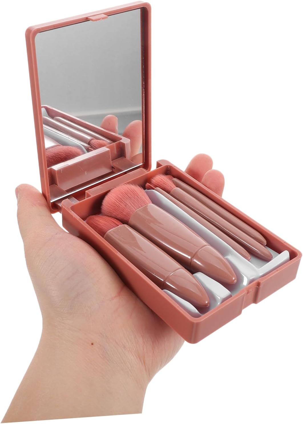 Mini Travel Make-up Kwastenset Spiegel Case Draagbare Gezichtstools Voor Vrouwen Compacte Reisformaat Make-up Kit