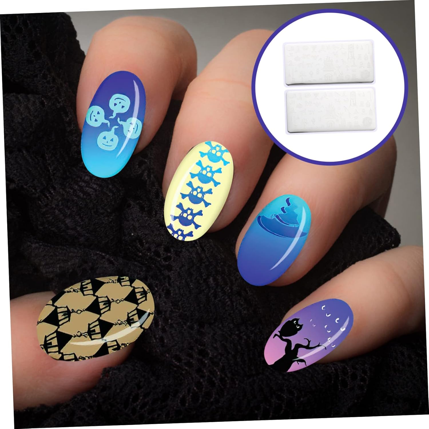 Halloween nail stamp set to swallow up your manicure collections, allows you to create decorative nails in fanciful designs, also for your friends who love nail art. skull nail plates this beautiful halloween nail stamping template is the perfect stamp plate for you