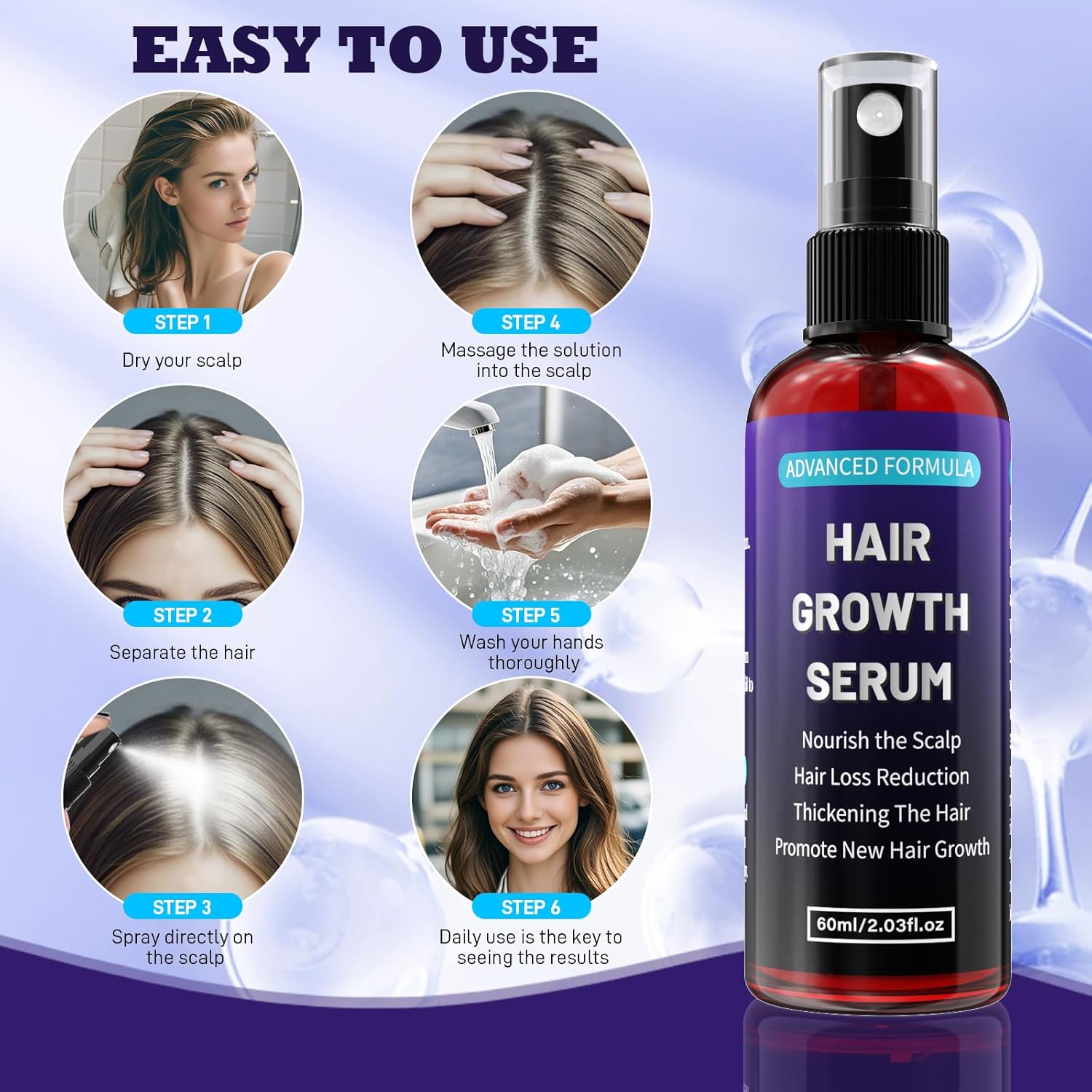 【Gebruiksaanwijzing】Vrouwen: 1 keer per dag aanbrengen.Mannen: 2 keer per dag aanbrengen.Gebruik per keer 1 ml (ongeveer 4 sprays), zowel op droog haar als na het wassen. Spray de haargroeispray gelijkmatig op de getroffen gebieden en masseer de hoofdhuid zachtjes tot het serum volledig is opgenomen. Spoelen is niet nodig. Na 1-2 maanden zult u merken dat uw haar dikker en sterker wordt. Bij regelmatig gebruik zult u na ongeveer 3 maanden nieuwe haargroei opmerken. Door consistent gebruik zal het haar voller en dikker worden.