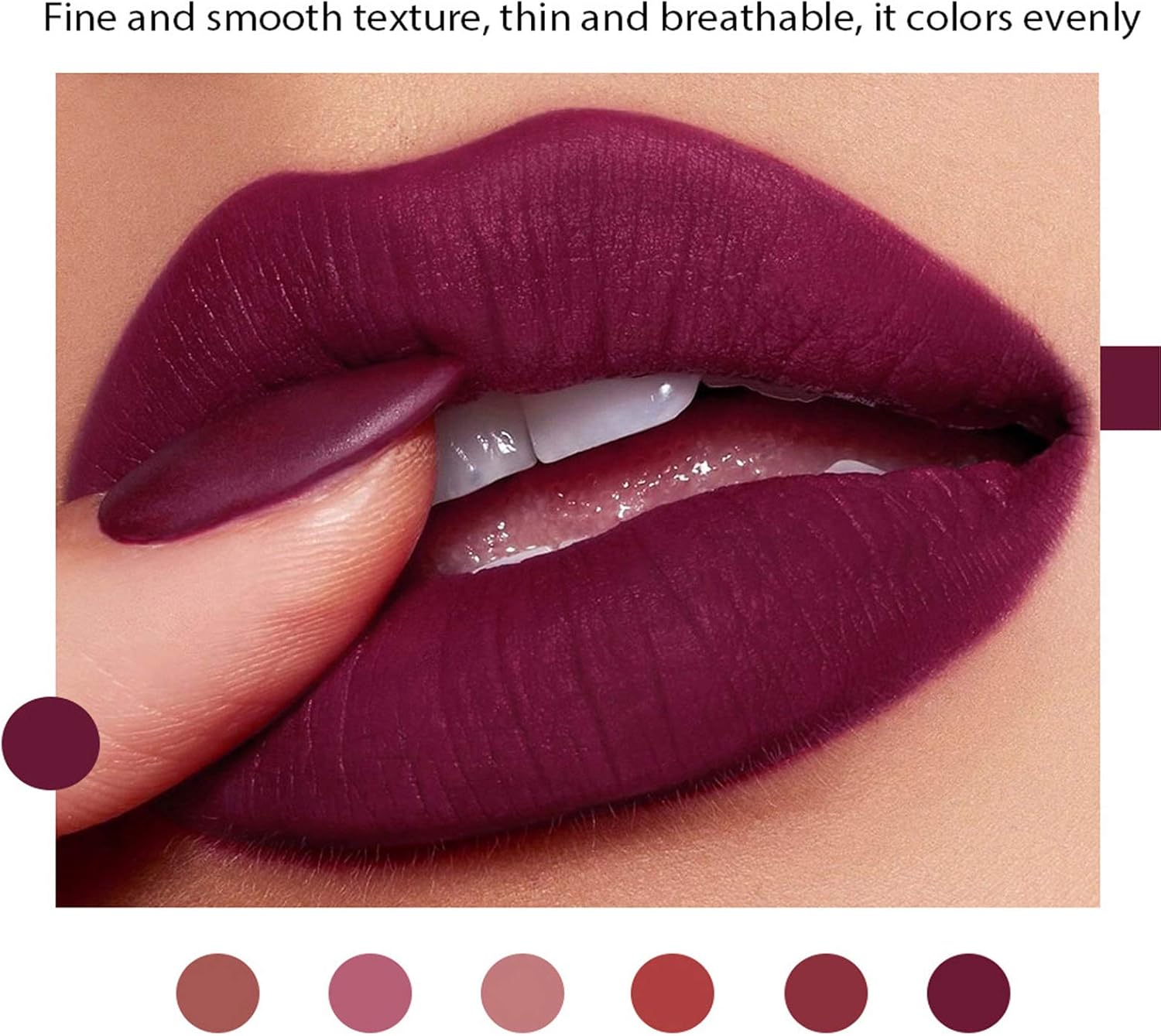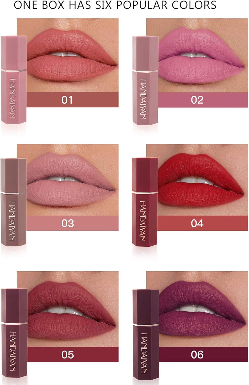 Matte textuur: het gaat om een set van 6 matte lippenstiften, die kleurintensief, fluweelachtig, duurzaam, waterbestendig, antiaanbaklaag, natuurlijk, zacht, soepel en hydraterend zijn. Matte make-up en rijk aan kleuren. Langhoudende make-up, fluweelachtige textuur. De matte vloeibare lippenstift met een gladde, matte afwerking geeft je lippen een fluweelzachte perfecte kleur en houdt.