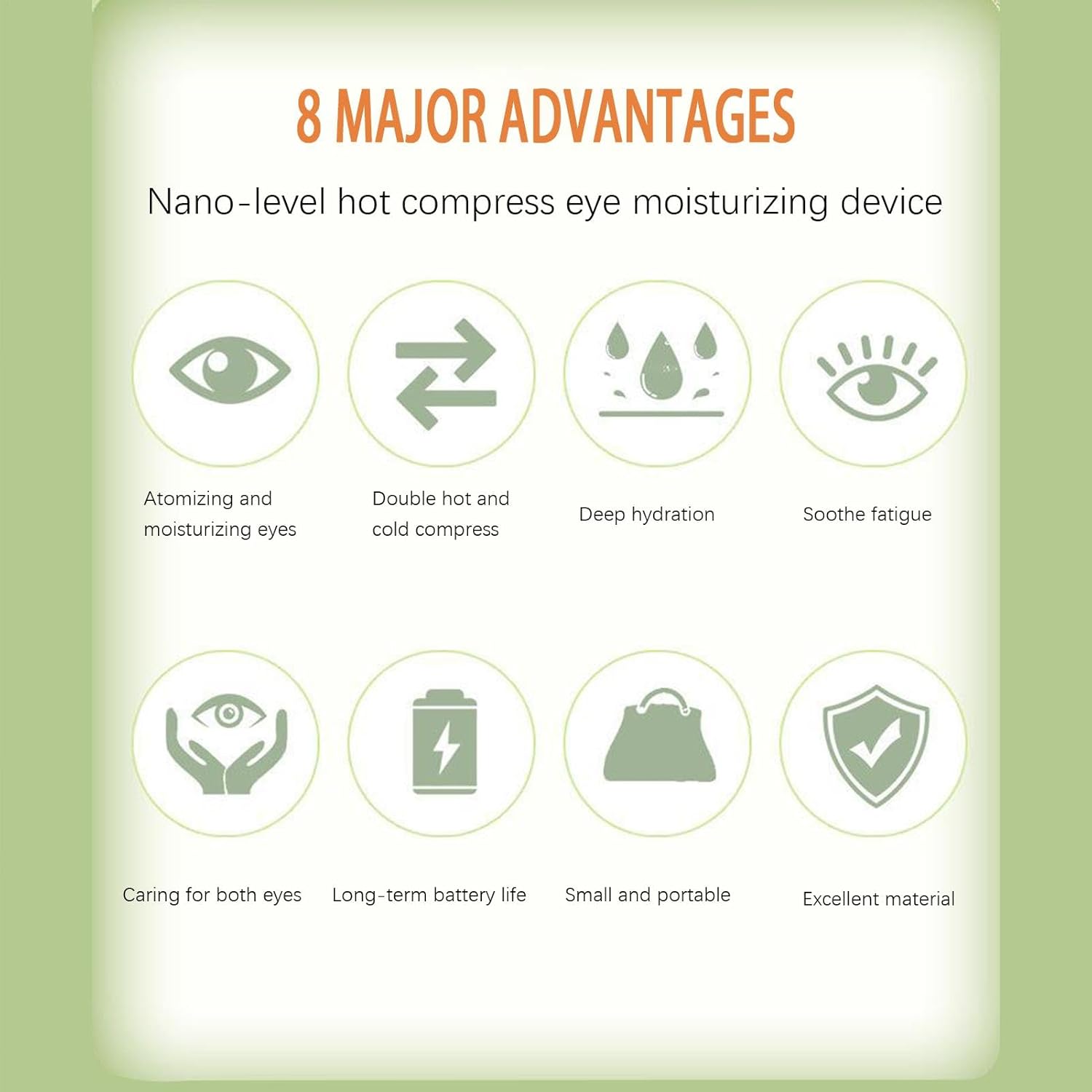 Verwarmde ontlasting: met 3 temperatuurmodi 45-65 biedt onze oognevelsproeier snelle verlichting van uitdroging en zwelling, onmiddellijk levendige vermoeide ogen voor een fris uiterlijk
