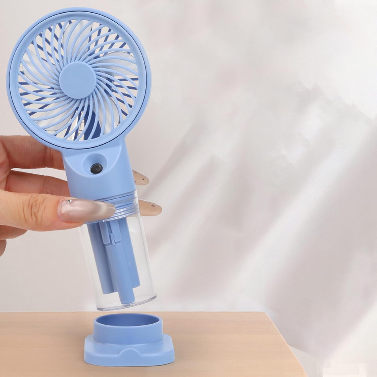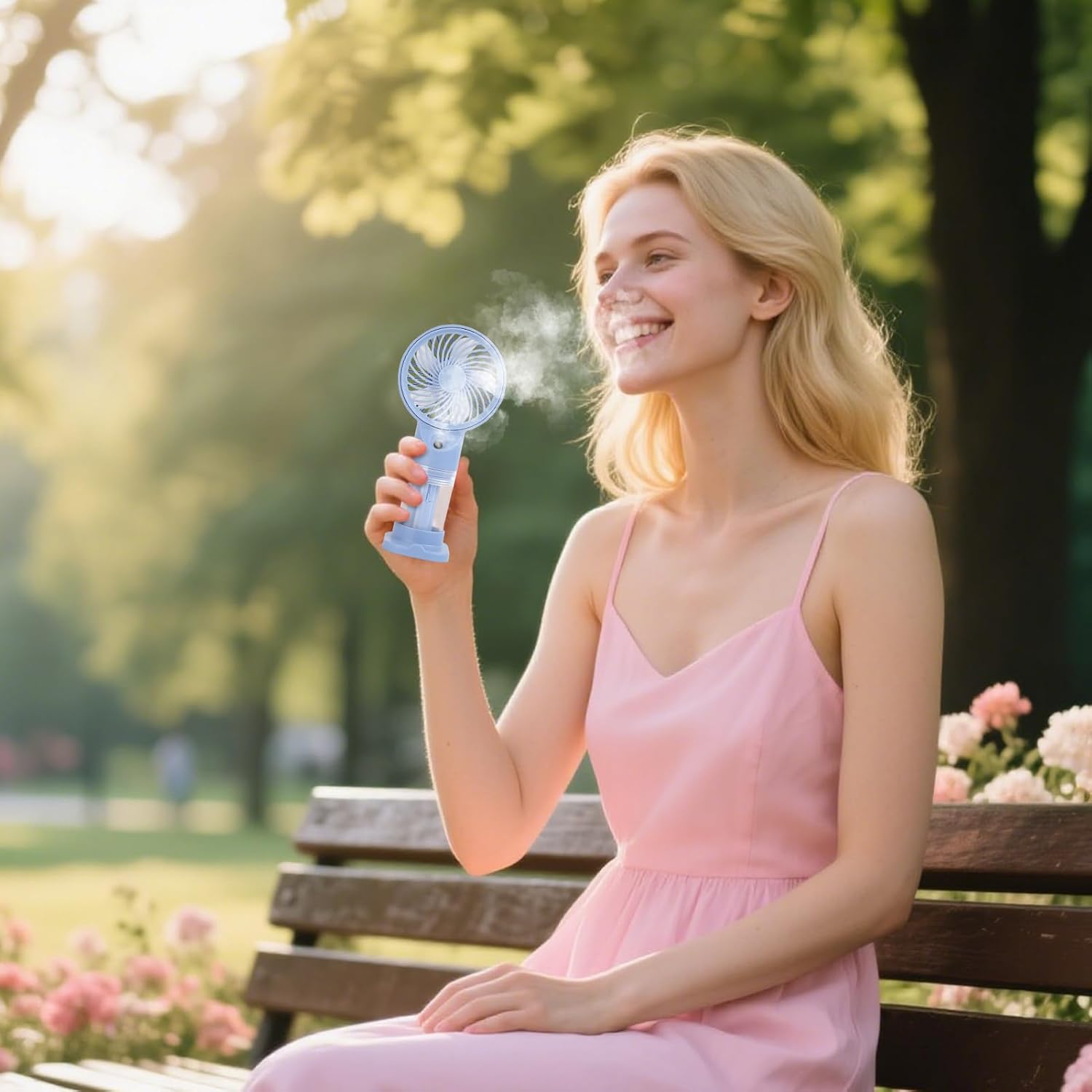 Cooling Mist Spray For Instant : This misting fan features a built-in water spray function that delivers a fine cooling mist, helping you stay refreshed and hydrated during hot weather activities like picnics, beach trips, or hiking.