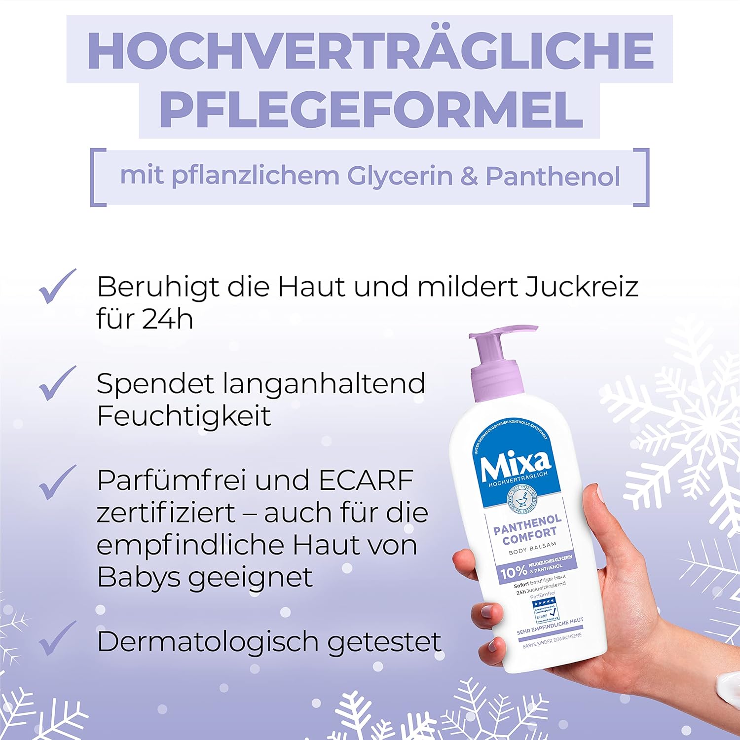 Resultaat: verzorgde en zachte huid, effectief tegen spanningsgevoelens en scheuren als gevolg van droogheid en roodheid, 24 uur jeukverlichtend effect voor een kalmerend huidgevoel