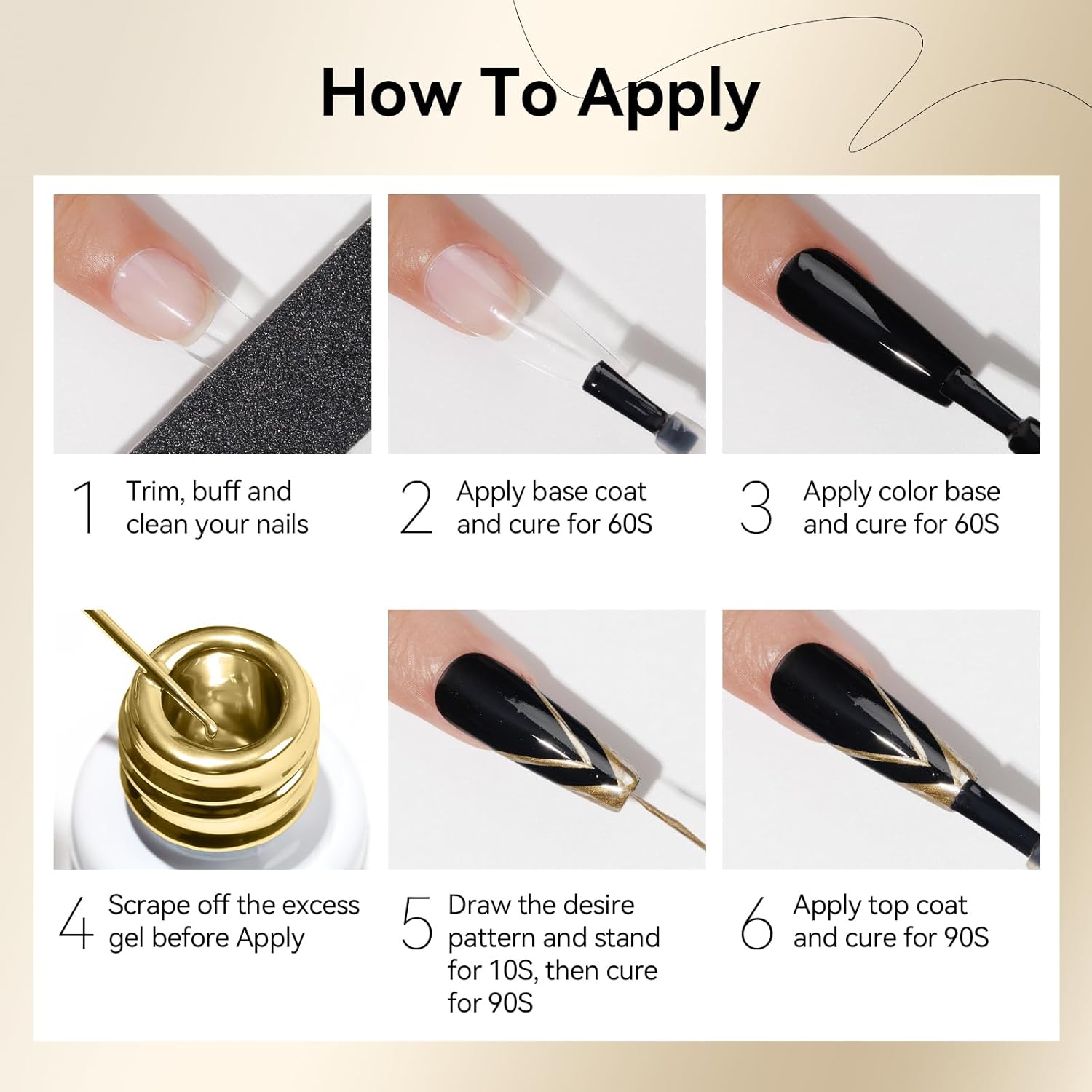 Built-in brush: A line nail brush is included, so there is no need to replace and clean the brush during the manicure. The gel nail polish brush is slim and sharp and can draw any nail art pattern, so you can draw nail art patterns smoothly