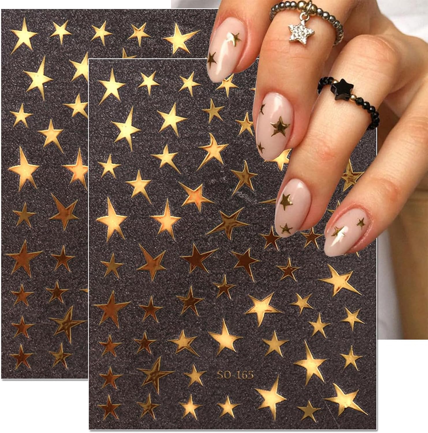 Star design: Luxury shiny star nail stickers have 4 different colors: white, gold, silver, black. These nail stickers offer different glitter effects from different angles and provide an elegant visual feel.