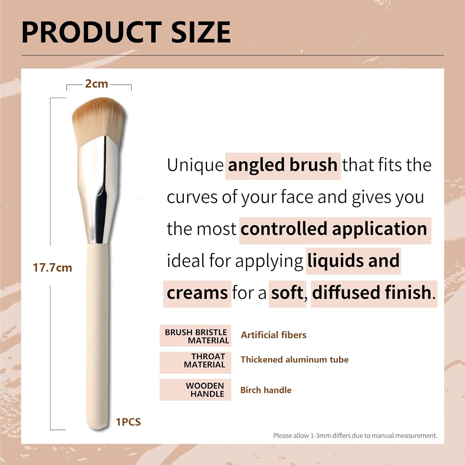 The angled foundation brush is perfect for everyone: the high-quality bristles are soft and gentle on the skin and ensure a comfortable use every time. Its compact size also makes it travel-friendly so you can achieve the desired look even on the go.