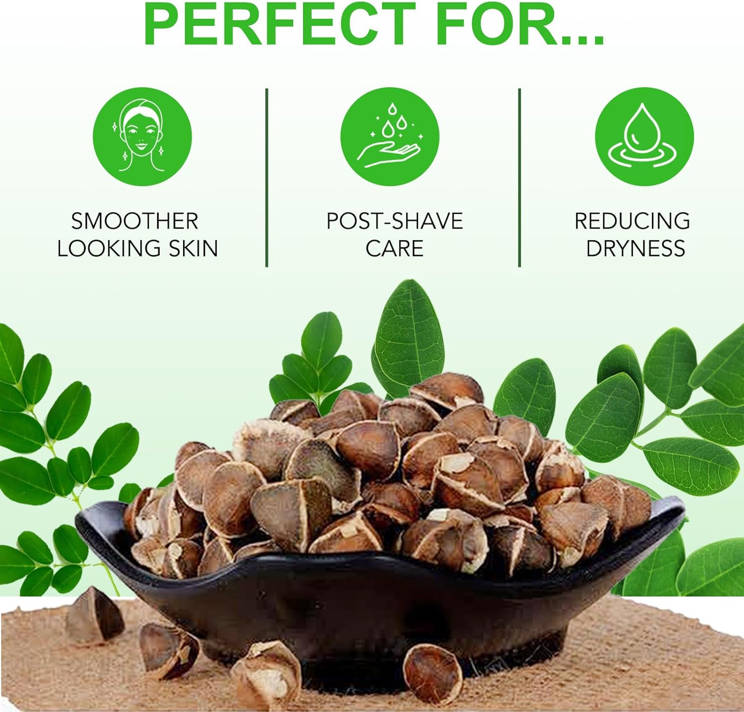 Moringa-olie voor de huid: Moringa-olie is een hydraterend middel tegen droge, jeukende huid en onvolmaakte huidtinten. Gebruik 1-2 druppels moringa-olie voor het gezicht in zelfverzorgingsroutines om de huid te herstellen. Kalmeert en beschermt tegen oneffenheden.