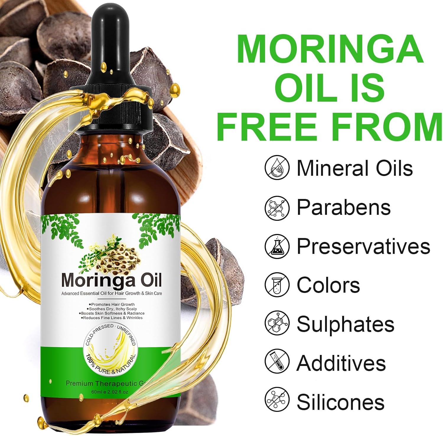 Moringa Biologische wonderolie voor huidhaargroei, 100% pure natuurlijke moringaszaadolie voor droge huid, koudgeperst, gezichtsverzorging, hydraterend, voedend en revitaliserend
