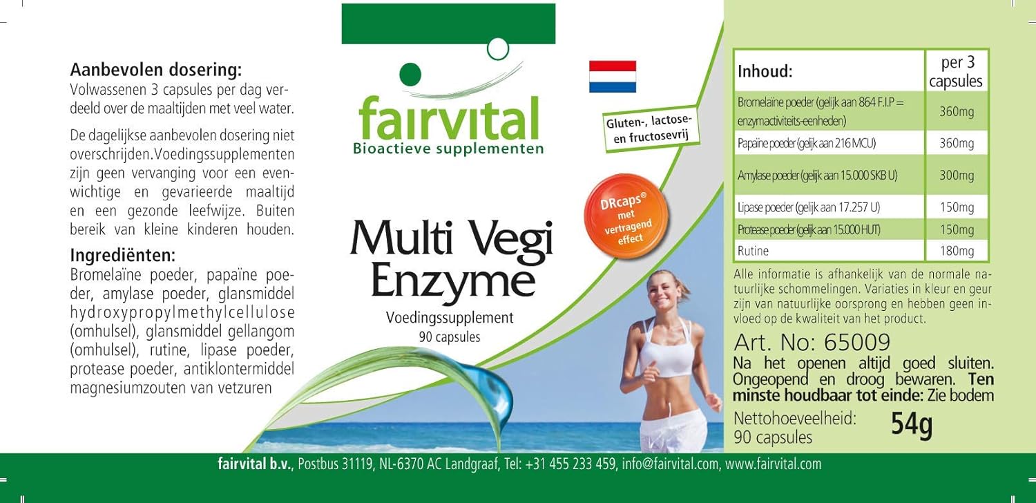 Multi Vegi Enzyme – 100% plantaardig enzymcomplex met bromelaïne + papaïne + amylase + lipase + protease + rutine – 90 capsules (DRcaps™)