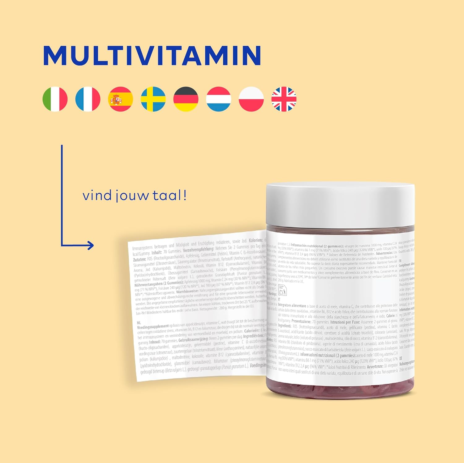 Multivitaminen Gummies – 70 Vegan Aardbeiensmaak Gummies – Geen Toegevoegde Suikers – Voor Vrouwen & Mannen – A, B, C, D, E, Biotine, Zink & Meer