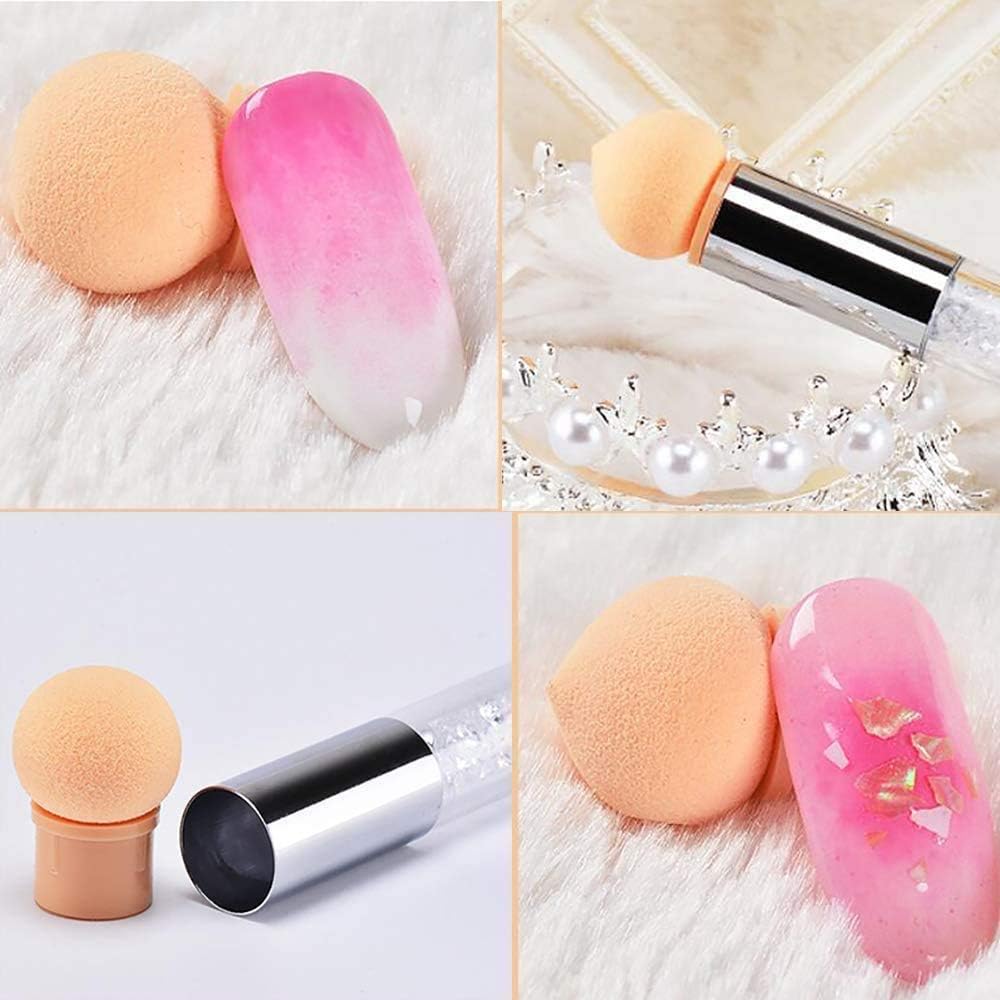 Nails Sponge Brush: Beschikt over ronde en puntige kop, geschikt voor Ombre en het tekenen van verschillende vormen van nagels kunst. De sponskop kan worden vervangen door de vervanging en herhaaldelijk worden gewassen, praktisch en duurzaam.