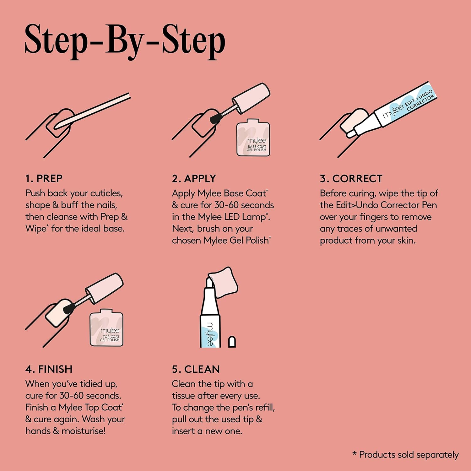 Mylee Edit Undo Hervulbare Nagellak Correctorpen: Breng Gemakkelijk Vlekkeloze Manicures Aan – Gellak Remover zonder Aceton met Reservetips voor Schone Resultaten