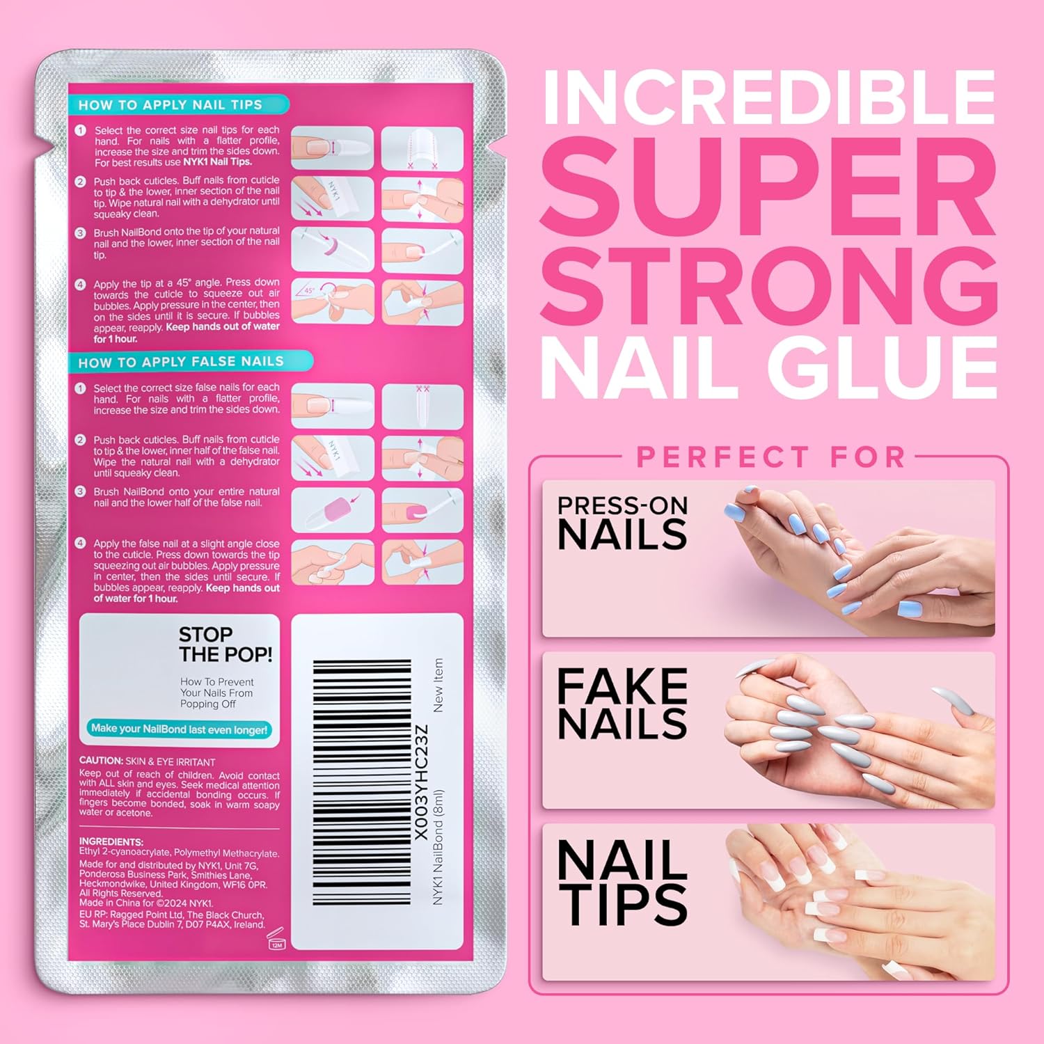 NYK1 NailBond is een super sterke en sneldrogende nagellijm die geformuleerd is om wekenlang te blijven zitten en een beschermende hold te bieden voor een supersterke hechting van de nagel aan de tip.