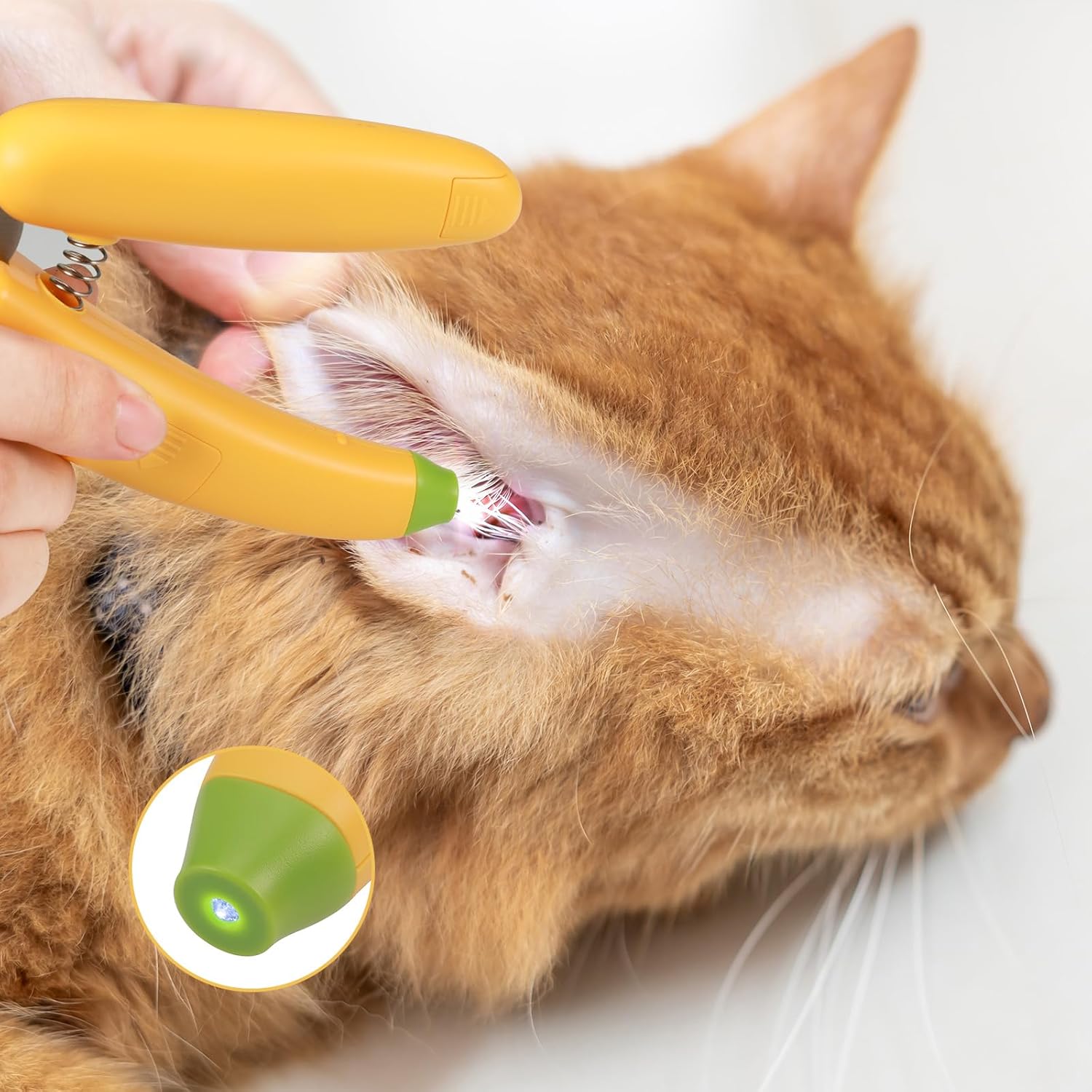 【Verbeterde LED-verlichting】 Nagelknipper voor huisdieren ingebouwde 2 hoge helderheid LED-verlichting, het voorlicht kan de poten van uw huisdier verlichten om te helpen zien waar de nagels en aderen zich bevinden om per ongeluk knippen te voorkomen, en het achterlicht kan worden gebruikt om te verlichten om te controleren op oormijt bij katten, om ervoor te zorgen dat uw kat gezond is