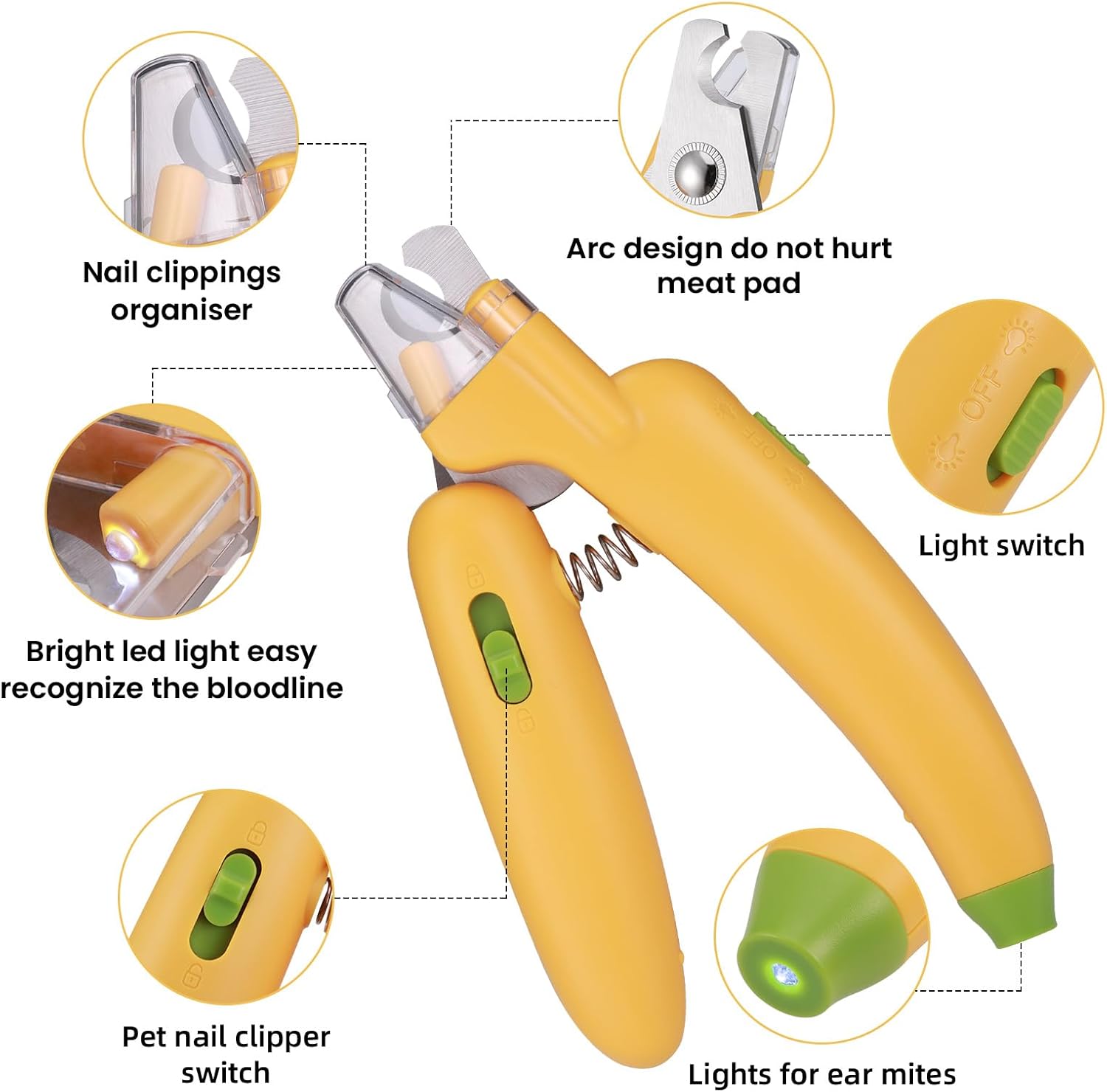 Nagelknipper voor katten, hondennagelknipper met led-licht en veiligheidsschild, teennagelknipper voor grote, middelgrote en kleine huisdieren met verborgen nagelvijl