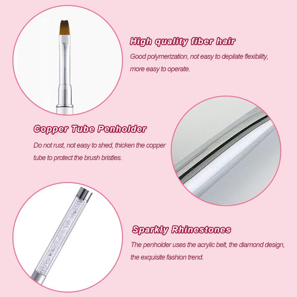 🎀 Ontworpen Met Een Deksel: De nagelkwast heeft zachte borstelharen die niet uit elkaar vallen of strooien bij het schilderen, het ontwerp met een deksel voorkomt stof en vervorming, de strassgreep is prachtig en mooi.