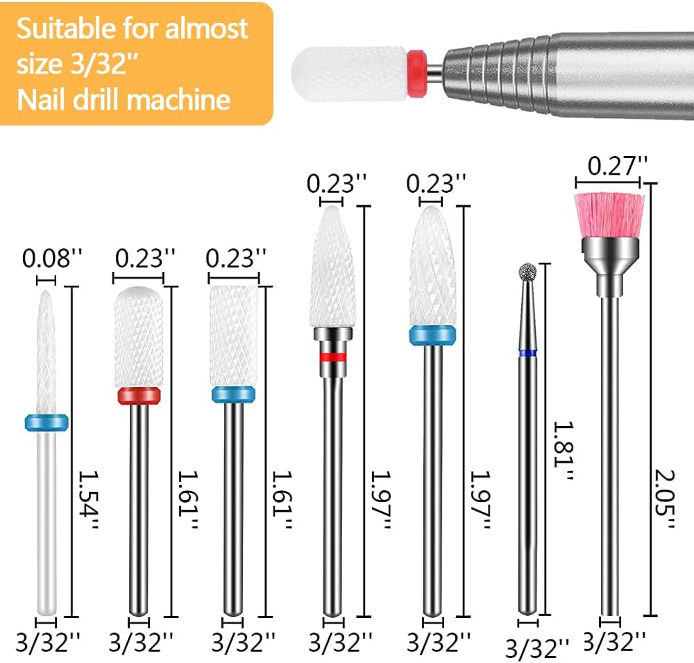Nagelboor gereedschap: deze nagelfrezen zijn verkrijgbaar in 7 verschillende vormen en maten om aan je verschillende behoeften te voldoen. zijn gemaakt van superieure keramische materialen met fijn behandelde oppervlaktestructuur, die duurzaam en waterbestendig is.