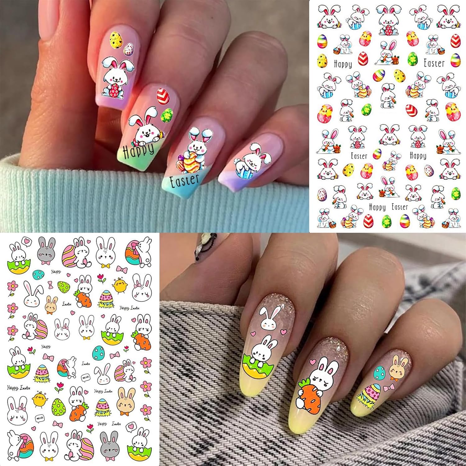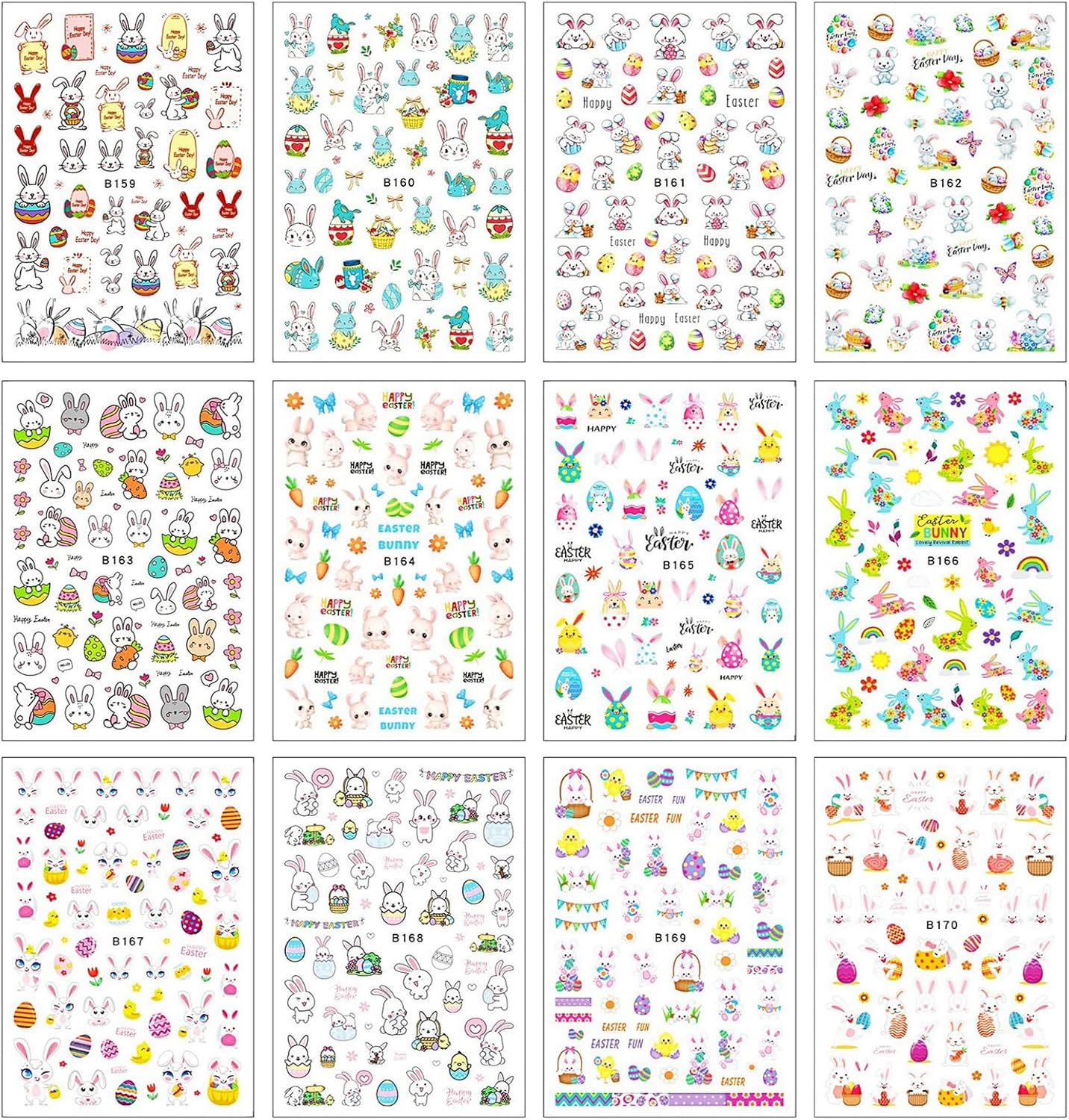 Nagelsticker Set 12 Vellen, Paashaas Nagelstickers Voor Kinderen En Volwassenen, Zelfklevende 3D Paas Nagelstickers, Nagel Stickers Voor Creatieve Nagelkunst
