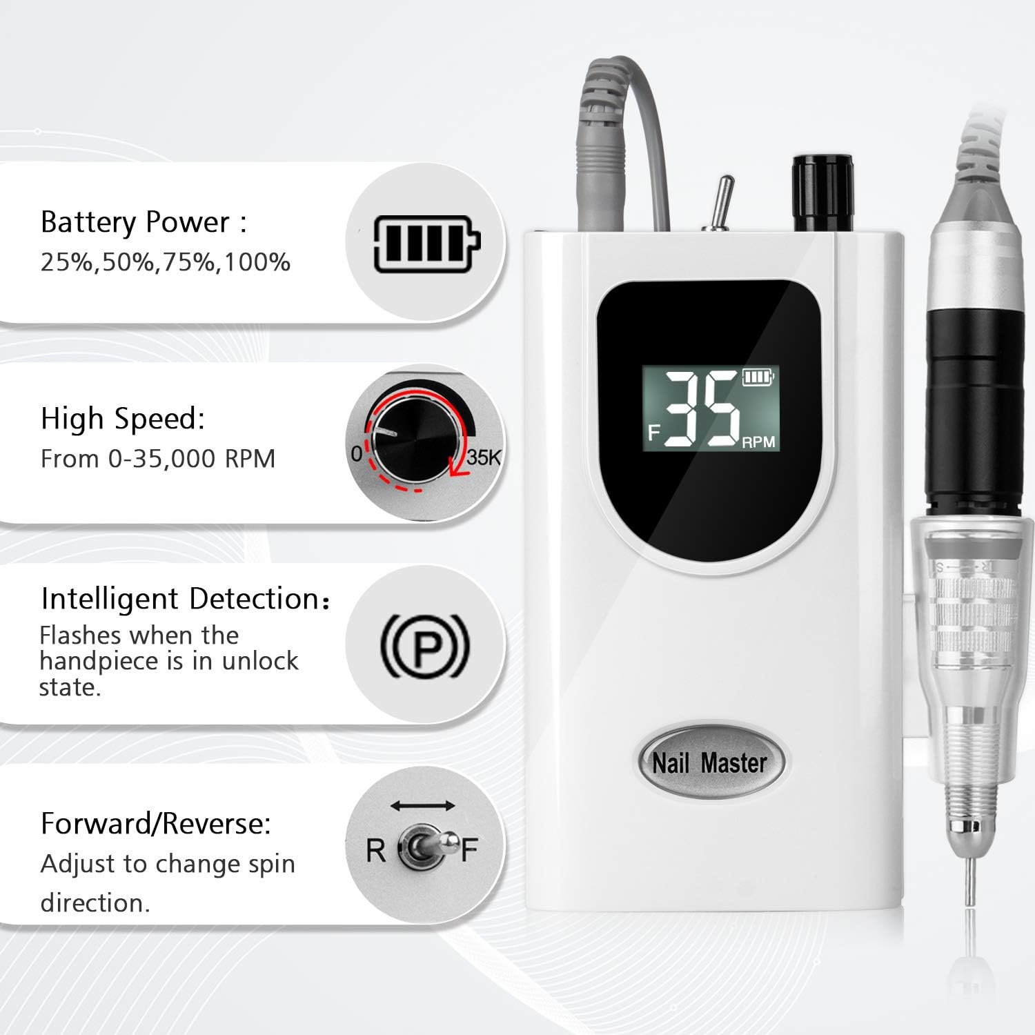 💎【Draagbaar en Oplaadbaar Ontwerp】Een snelle lading van deze elektrische nagelvijl duurt slechts 1,5-2 uur en hij blijft 8-10 uur werken. Bovendien kun je op het LCD-scherm de snelheid van het nagelknipper en het batterijverbruik aflezen, zodat je het kunt opladen wanneer dat nodig is en precies kunt zien hoe snel je het nodig hebt.