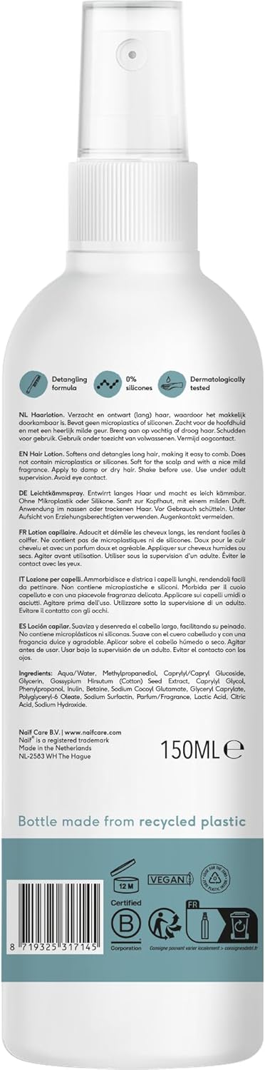 Naïf – Ontwarrende haarlotion – voor baby’s en kinderen – Natuurlijke ingrediënten – Hydraterend – 0% microplastics en alcohol – Tegen haarknopen – 150ML