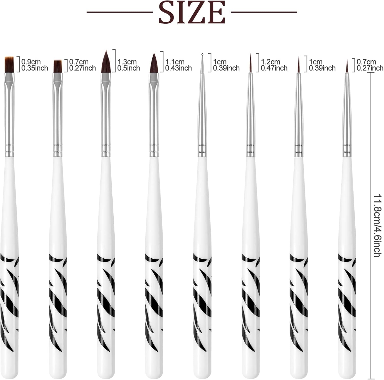 【Hoge kwaliteit】: Nagelkunstborstels zijn gemaakt van premium nylon haar en goed verzamelen, dat gemakkelijk aan te brengen is en je een soepele applicatie kan bieden. De nagelborstel wordt geleverd met een metalen stempel, die het penlichaam en de punt van de pen stevig vergrendelt, duurzaam voor gebruik.