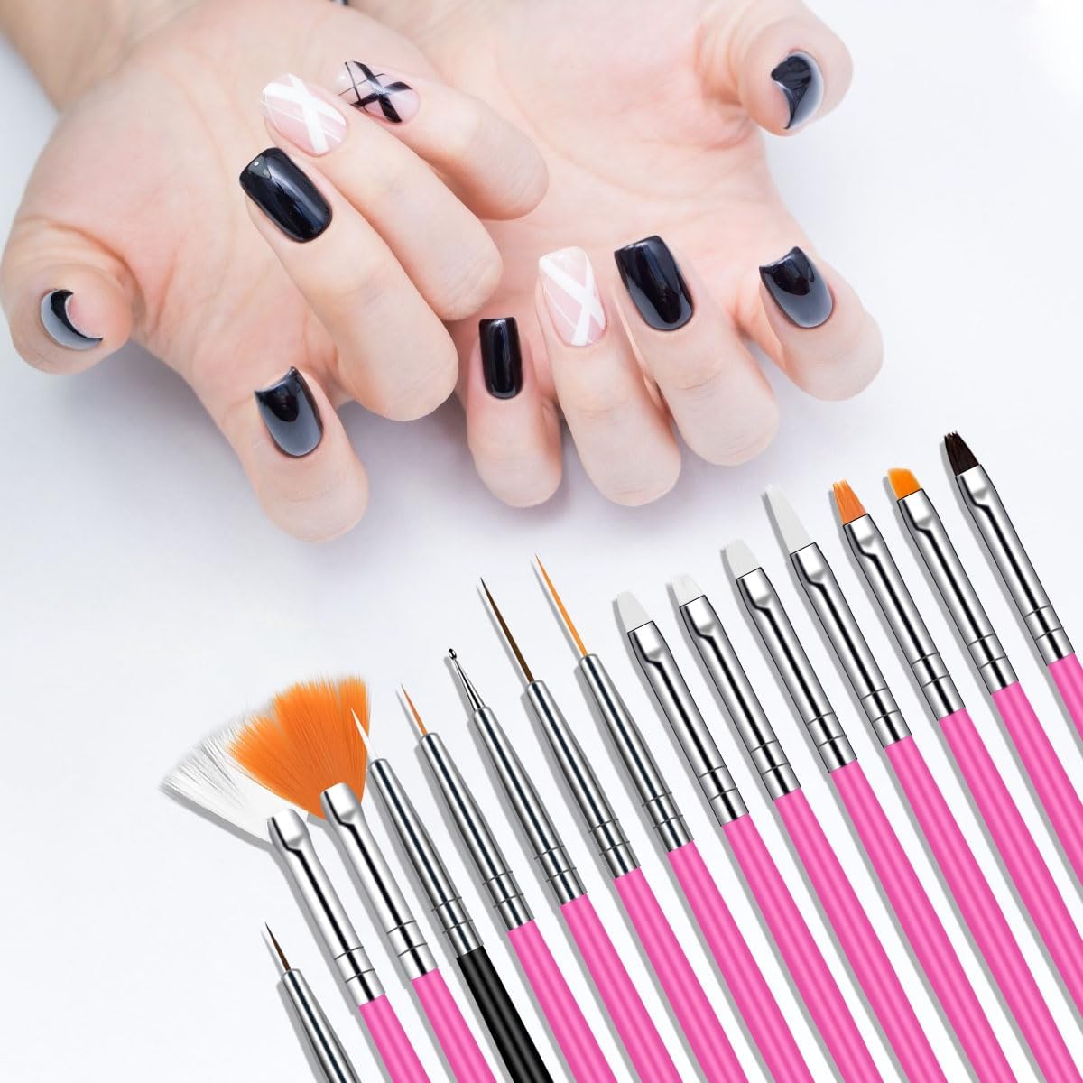 Professionele nagelverfset: 15 stuks nagelborstels worden geleverd met lijnpenborstels, tekenpenborstels, sectorpenborstels en nagelkunsttipsbouwerborstel van verschillende vormen tot maten, teken eenvoudig elk prachtig 3D-schilderij
