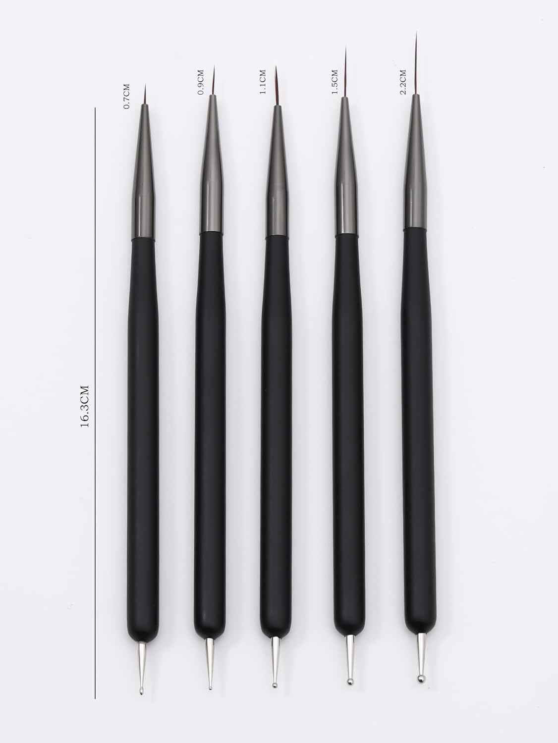 【BUNDEL SET】: Deze professionele nagelacrylborstelset bevat 5 maten liner brushes (7mm, 9mm, 11mm, 15mm, 22mm) en 5 maten dotting tools (0.1/0.15/0.2/0.25/0.3), ideaal voor het tekenen van verschillende patronen.