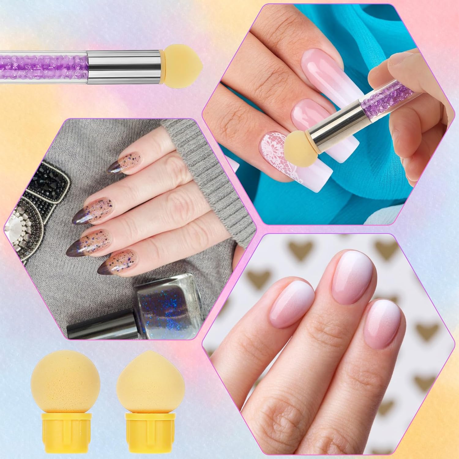 Hoogwaardige sponskop: deze kleurverloop nagelspons maakt gebruik van hoogwaardig sponsmateriaal om het kleurverloopeffect gelijkmatiger, elastischer en herbruikbaar te maken