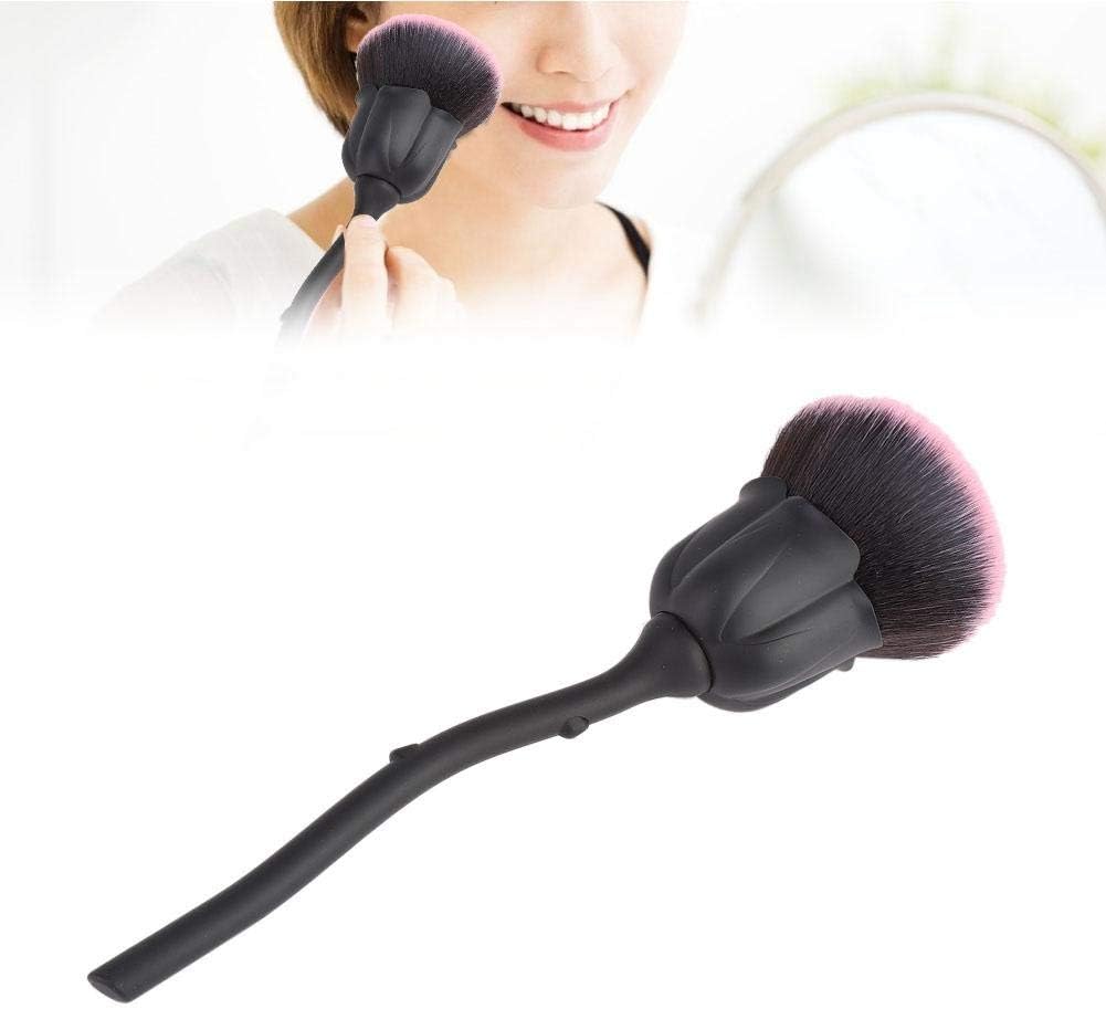 Nail Dusting Brush Art Design Dotting Painting Pen Rose Shape Long Handle Nail Art Brush Manicure Nail Buffing Powder Removal Brush (02# Black+Pink)