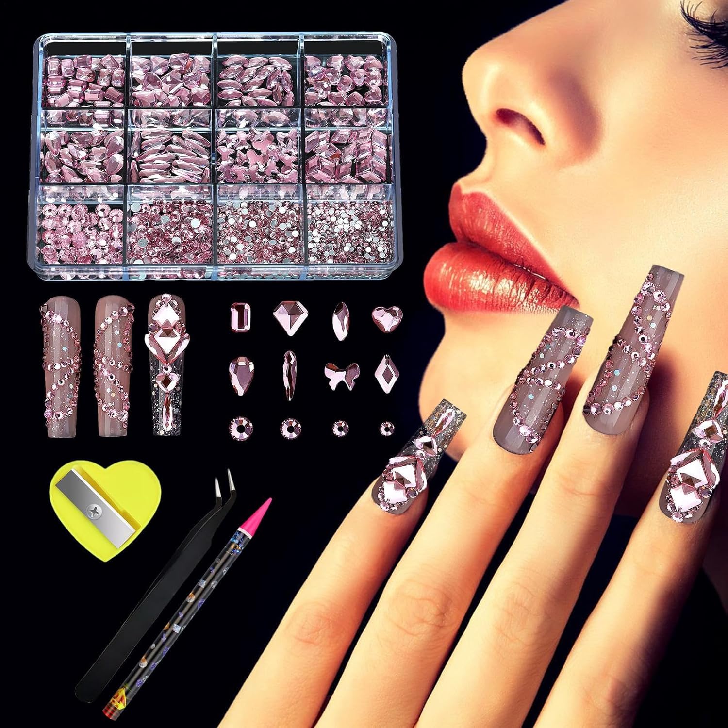 bereik verbluffende nagelontwerpen met een mix van vormen en platte steentjes, waardoor diverse visuele effecten perfect zijn voor elke gelegenheid of persoonlijke stijl