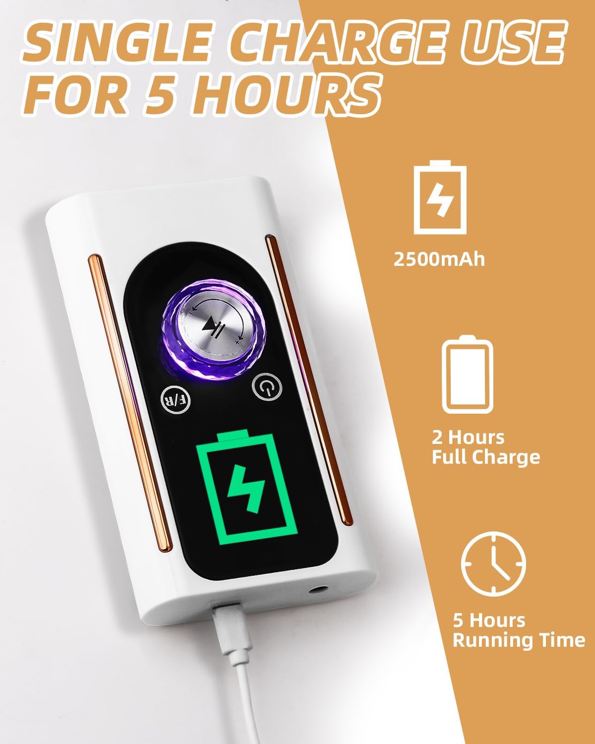 2500 mAh extra durable battery and practical stand: Our electric manicure set is equipped with an ultra-durable battery, which does not get hot even after prolonged use and provides enough working hours to meet your nail art needs. Thanks to the portable stand, you can always put the nail clipper in your pocket, it is easy to carry. In addition, the included table stand ensures a clean and tidy worktop.