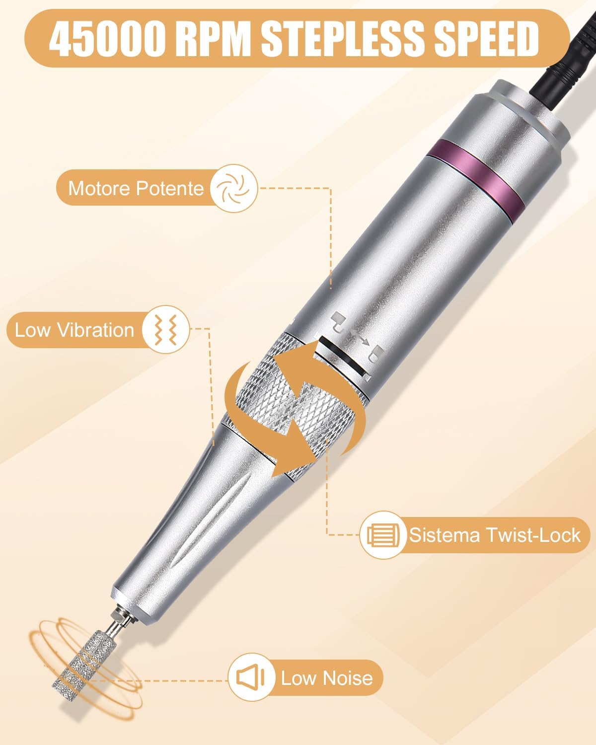 Low noise and low vibration design. The electric manicure pedicure set features advanced anti-vibration technology, a low-noise and vibration design, so you can enjoy a quiet manicure, at home or in public without disturbing others. The unique heat dissipation system makes the device more stable and helps you complete your manicure in a pleasant environment, which increases the comfort of use.