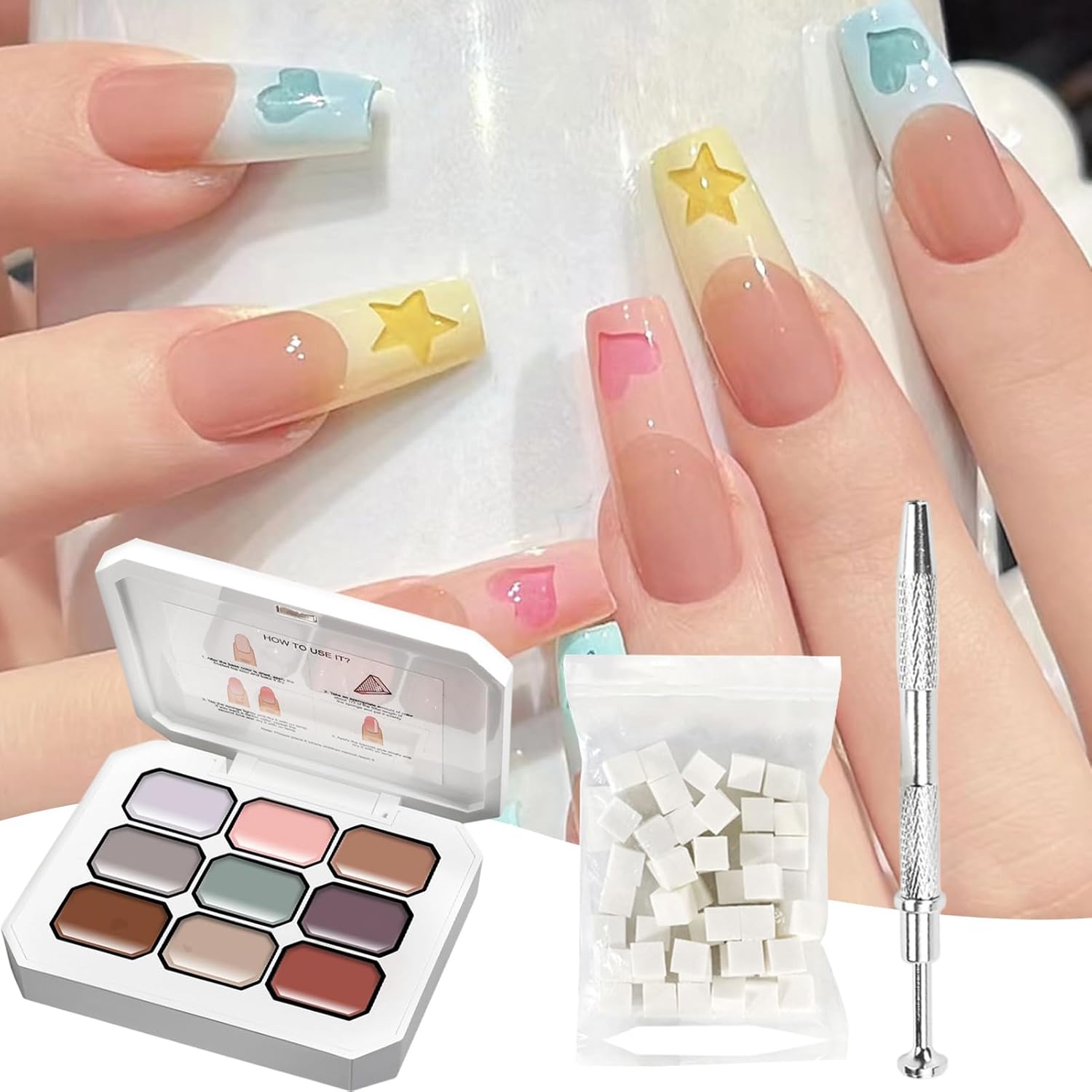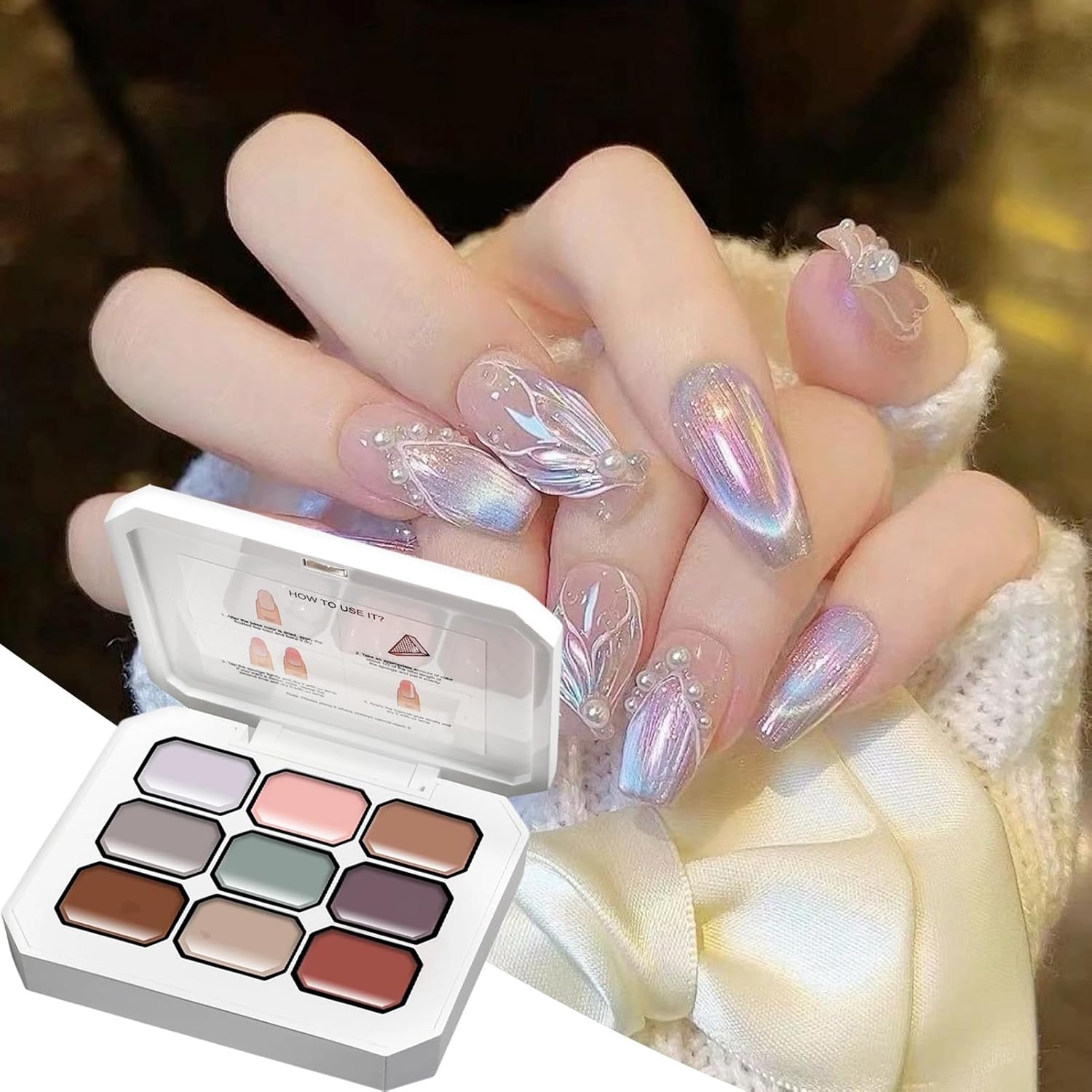 Nail Painting Gel, 9 Colors Nail Gel Paint Palette, Sponges and Metal Grabber Attached, Long-lasting, Perfect for Professionals, Salon, Wedding, Gathering, and Home Manicure