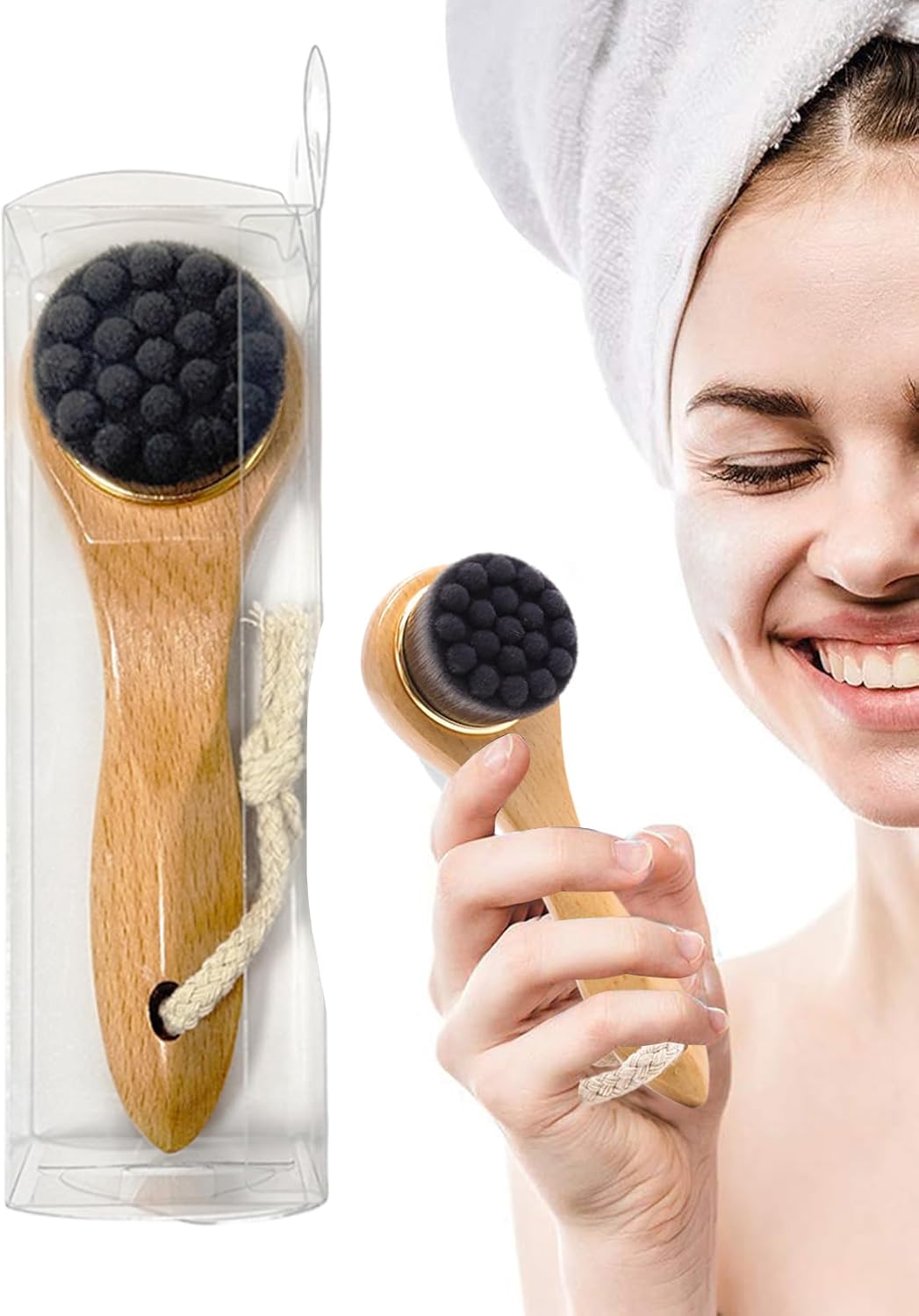 Nankoyal Gezichtsborstel Voor Huid – Droogborstelen Scrubber,Natuurlijke Houten Borstelhaar Exfoliator Massage Tool Voor Stralende Huid Wangen Kaak Hals Neus