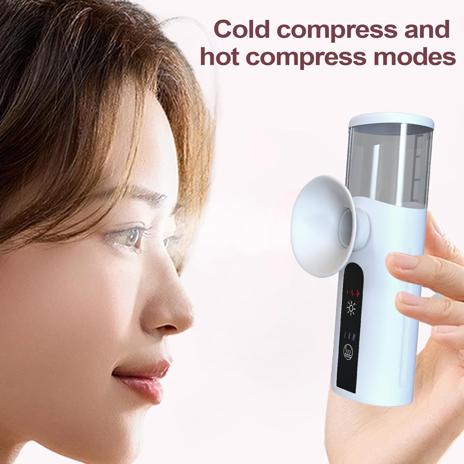 de nano-oogmistspuit spuiter voedt en verjongt vermoeide ogen met een zachte mist, terwijl de dubbele modusinterface van koud en hete kompres zijn kalmerende kracht verbetert