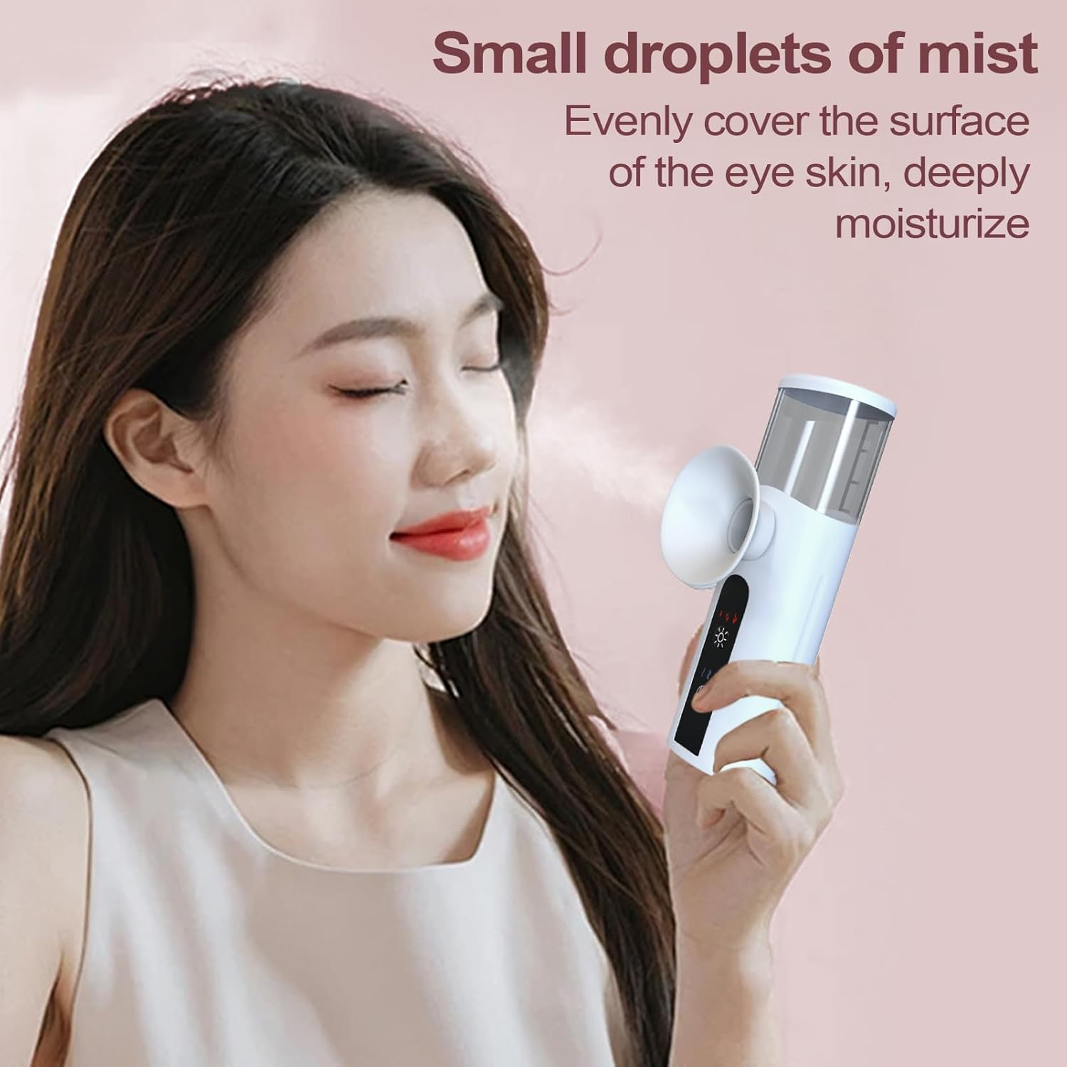 met geavanceerde nano-atomisatietechnologie verdeelt onze Nano Eye Mist Sprayer gelijkmatig fijne mistdruppeltjes om het ooggebied diep te hydrateren en te vernieuwen. Het verlicht effectief oogvermoeidheid en pijn