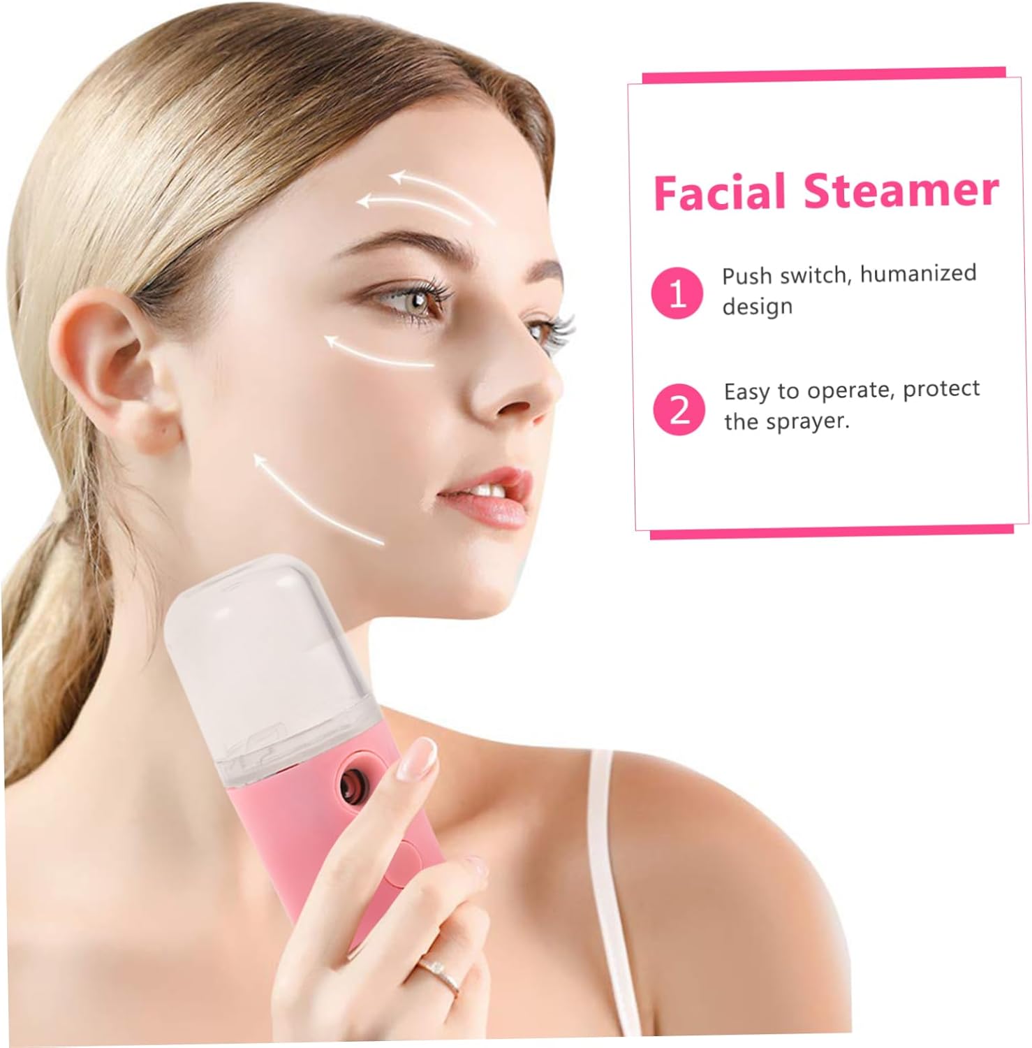 Gezichtsstomer: duwen, menselijk ontwerp, eenvoudig te bedienen, beschermt de sproeier, usb-oplaadbare stomer