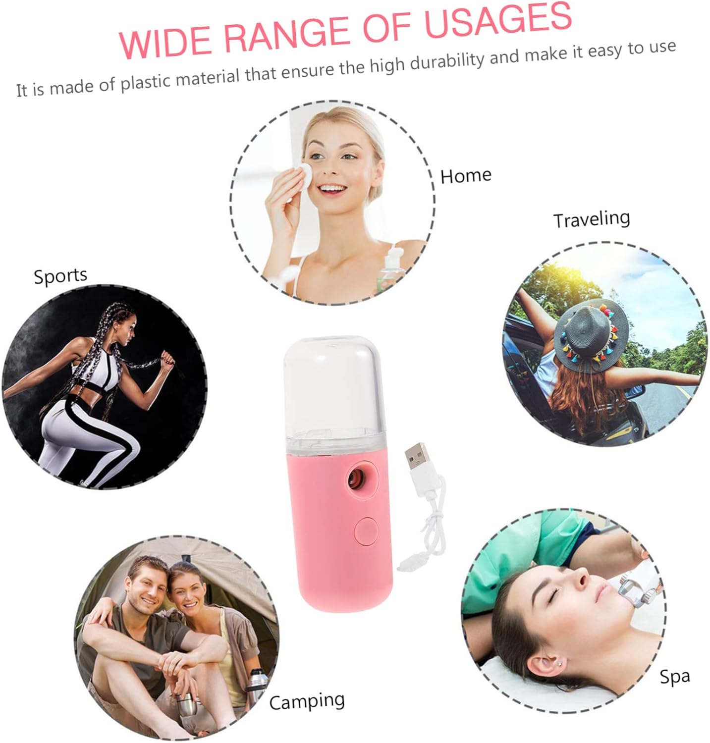 Nano Mist Sprayer Deze is gemaakt van kunststof materiaal dat zorgt voor een hoge duurzaamheid en het gemakkelijk te gebruiken maakt. Gezichtsstomer Deze gezichtsstomer kan uw gezicht de hele dag van watervoeding voorzien, is draagbaar en mini, zodat u hem altijd mee naar buiten nemen