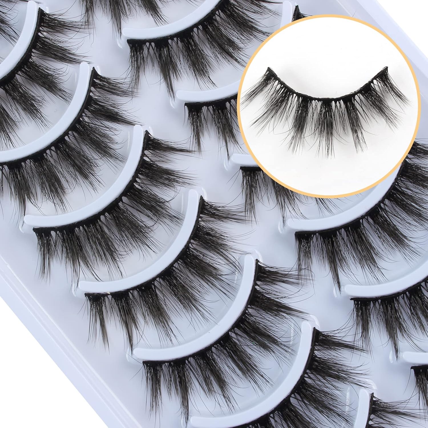 Natural False Eyelashes, 8D 10 Pairs Long Extension Makeup Eyelashes Set Wispy Thick Handmade Dramatic Volume Reusable False Eyelashes