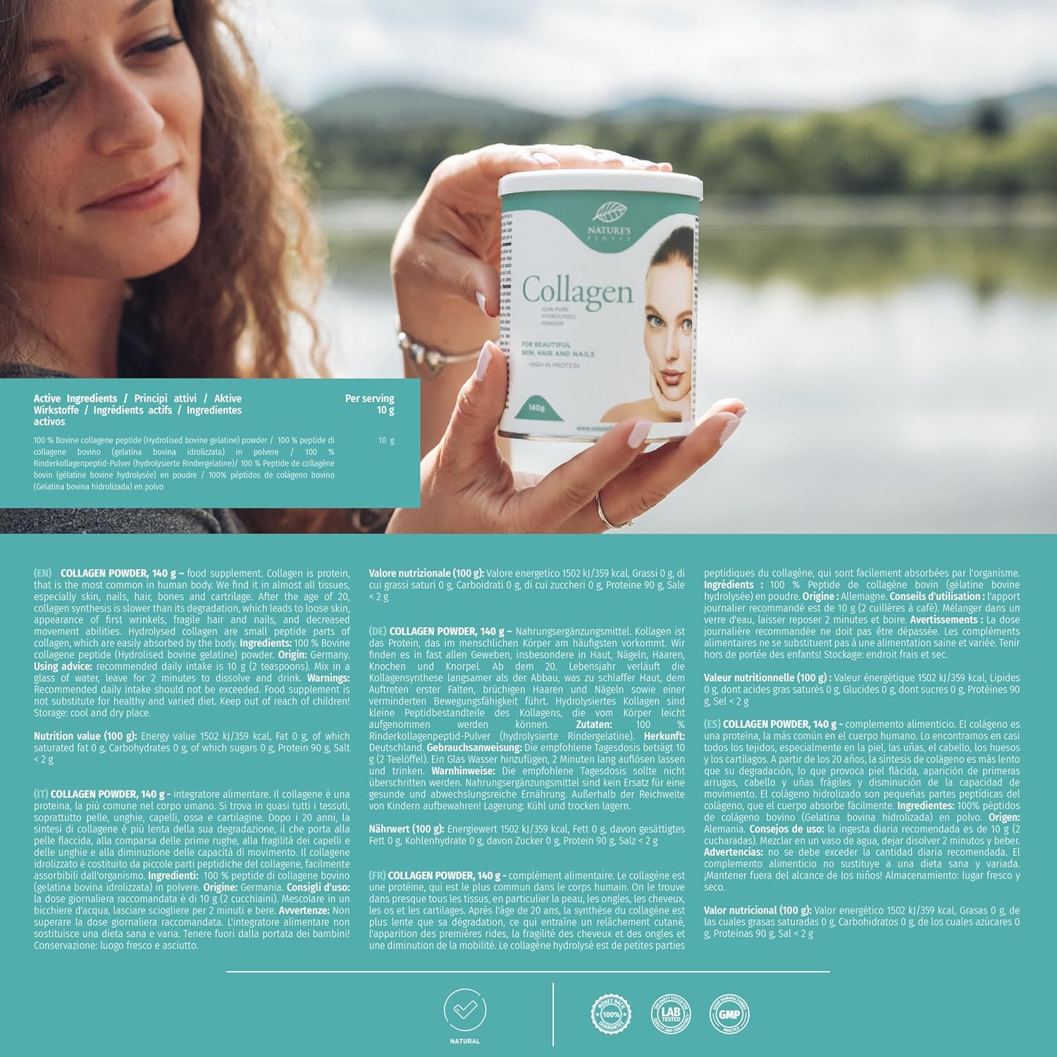 Nature’s Finest Collageen Poeder 140 g | Volledig Natuurlijk Eenvoudig Oplosbaar Collageen Poeder | Voor Mooie Huid, Haar en Nagels.
