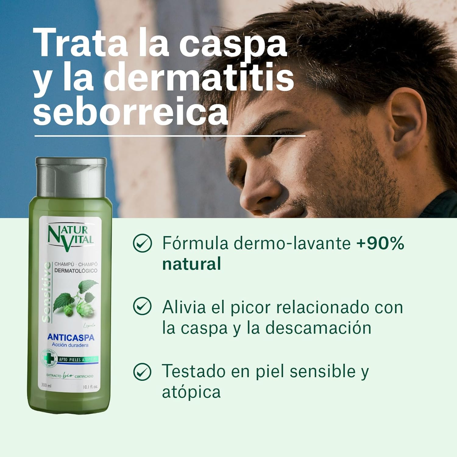 NaturVital Champú Sensitive Anticaspa Dermatológico | Sin Parabenos – 300 ml
