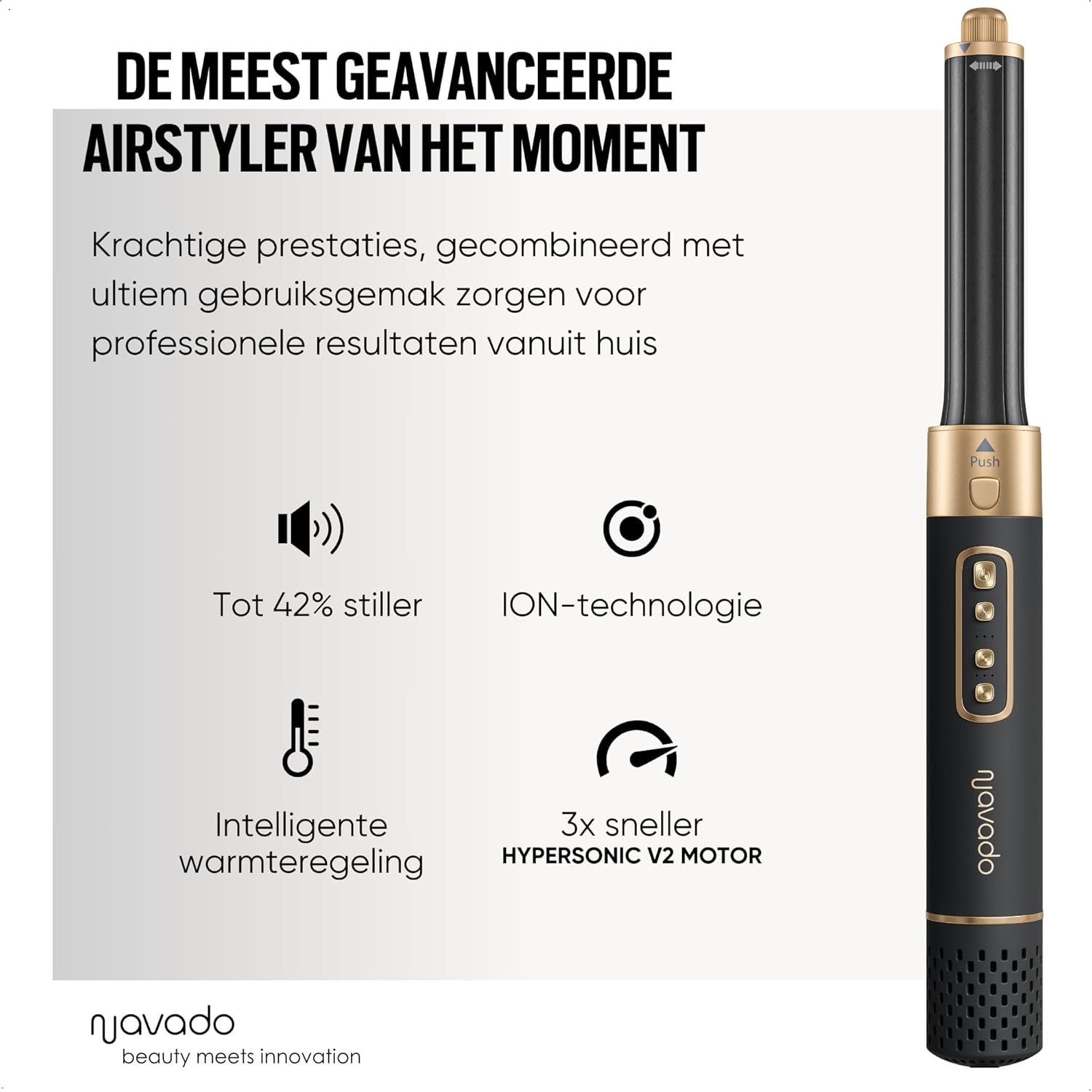 De Navado Airstyler Pro is geweldig en eenvoudig in gebruik. Het is verpakt in een luxe doos waardoor alles kompleet en compact opgeborgen kan worden. Supersnelle levering (volgende dag) terwijl 3 á 4 dagen wordt aangegeven.De service die geboden wordt is top! Direct antwoord op je vragen en verduidelijkt met schermafbeeldingen. Navado bedankt en ga zo door!
