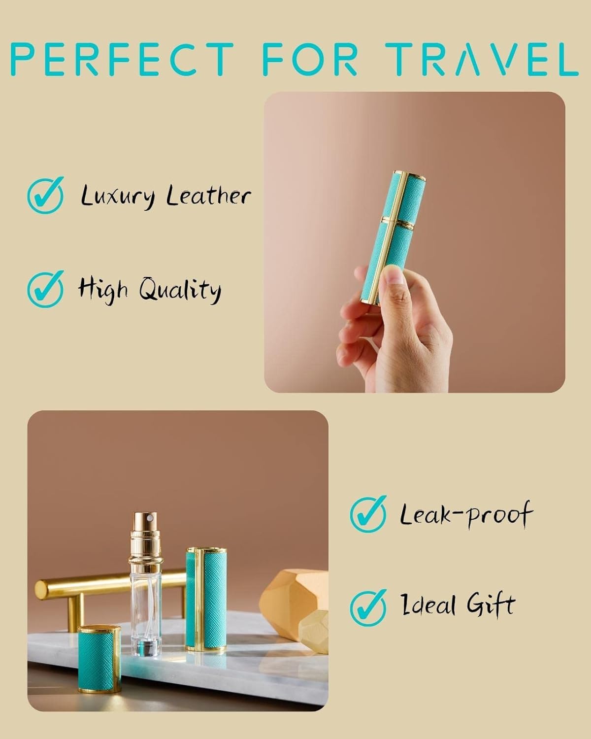 Klein en draagbaar en veel gebruikt: de parfumverstuiver heeft slechts één lippenstiftgrootte en kan gemakkelijk in de tas, handtas worden opgeborgen en in het vliegtuig worden meegenomen. Ideaal voor reizen, werk, zaken, afspraak, enz.