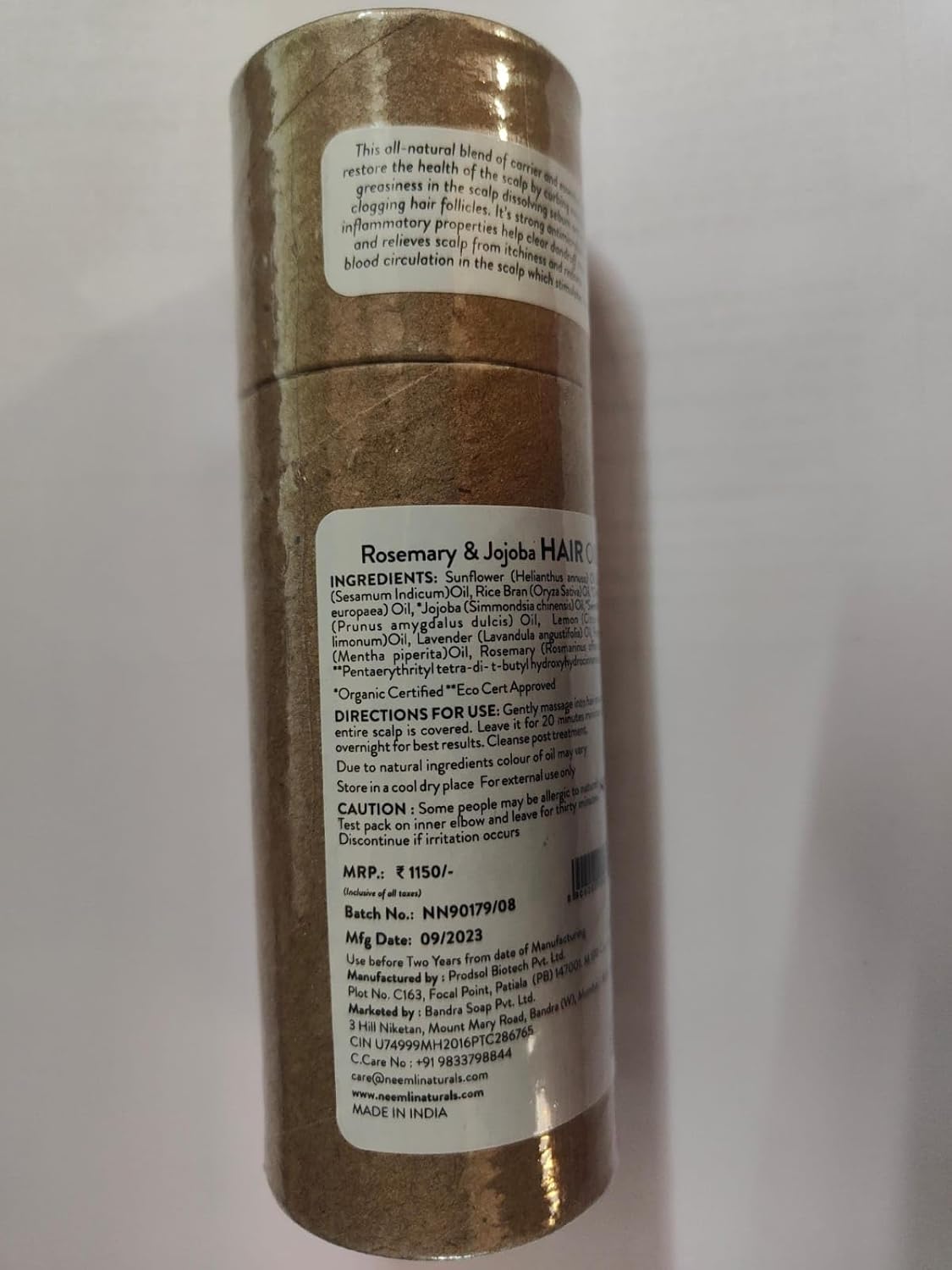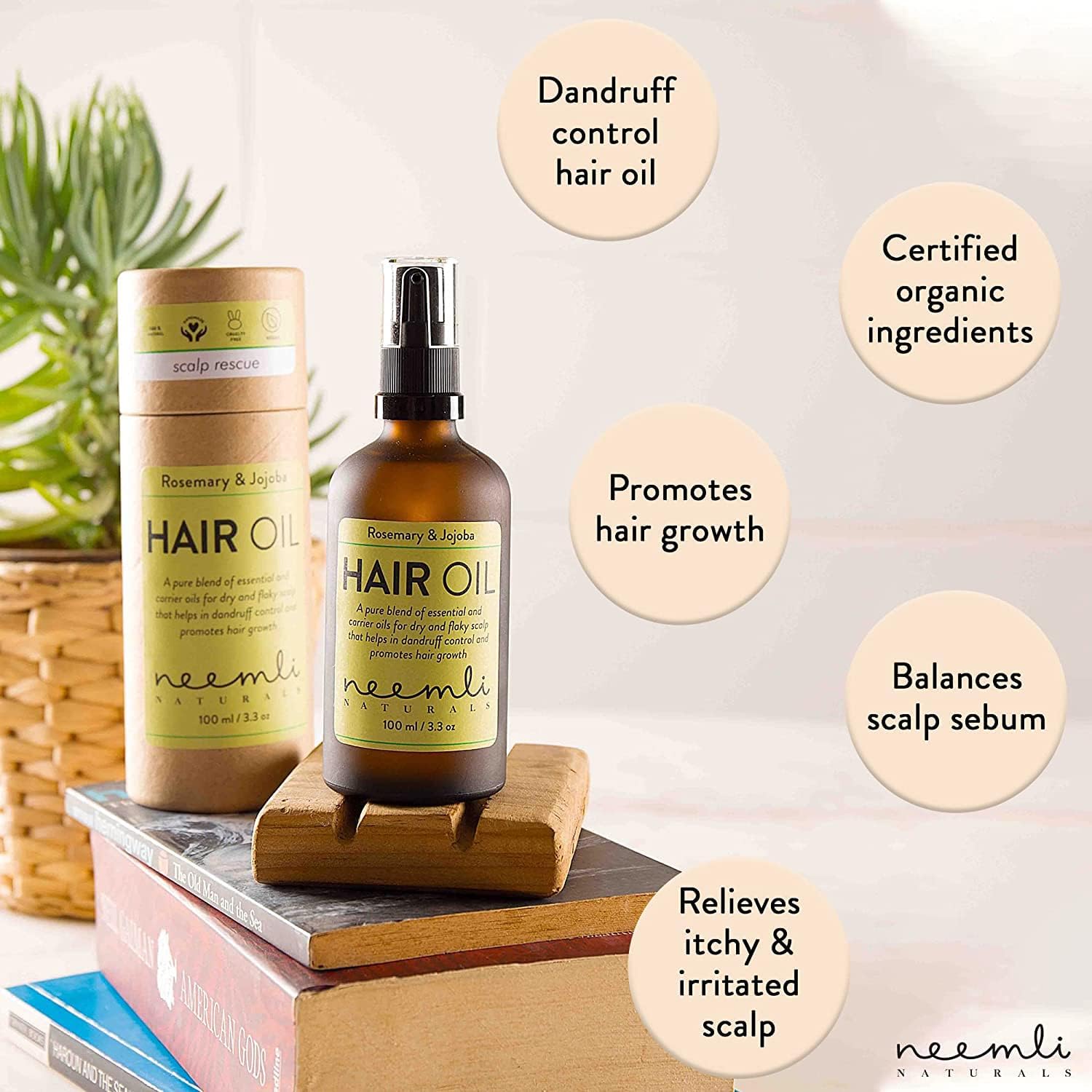 Neemli Naturals Rosemary & Jojoba Hair Oil, Anti Dandruff Hair Oil, Promotes Hair Growth, 100% Natural, Skin, Moisturizer, Hair and Nails Growth, 100ml