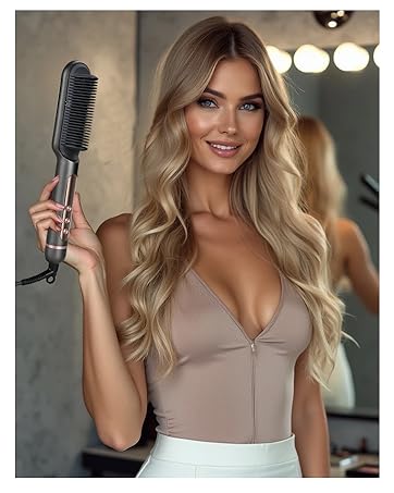 Hace mucho que se pusieron de moda las típicas planchas cerámicas para lanchar el pelo, pero sinceramente si las utilizas mucho tu pelo se acaba dañando, existen alternativas que no maltratan tanto tu pelo y esta es una de ellas.Se la cogí a mi mujer porque tiene el pelo onduladito y a veces le apetece llevarlo liso y está encantada con él.La presentación del producto está exquisitamente cuidad, lo que lo hace perfecto para regalar. Nos llega en una elegantísima caja de color crema de cartón duro de muy buena calidad con diseño minimalista en relieve en color cobre, super bonita. Al abrirla encontramos a la vista, dentro de una bolsa reciclable, el cepillo en sí y el manual multi idioma y al lado viene una pequeña funda de cartón que esconde el cable enrollado con su presilla incluida, la presilla es de las que va incluida en el cable, buen punto.El cable es de muy buena sección, se nota que es mallado y apantallado y además otro punto muy bueno es que el conector al peine es giratorio 360º con lo que olvídate de enredos, líos y que se rompa el cable, esto está muy bien pensado.Cuando tienes el cepillo en la mano dices !Guau¡ des una calidad excepcional se siente robusta y de muy buena calidad. No lo indica, pero parece como de aluminio pulido de muy buena calidad, el color es un gris estroncio que con el peine negro y la botonera y su adornos de color cobre, hace que sea super elegante y bonito.El cepillo alisador consta de unos dientes 3D de plástico duro pero muy suaves con un sistema patentado a nivel mundial y la tecnología de calentamiento PTC para un calor uniforme. Calentarlo hasta la temperatura máxima tarda 1 minuto nada más, lleva un chip de control de temperatura para que esta siempre sea constante e uniforme , esto hace que se reduzca el daño al cabello hasta en un 60% por el calor, como ya dije antes, es una gran alternativa a las planchas tradicionales cerámicas.Tiene un diseño anti-escaldaduras, ya que los dientes de peine están aislados del exterior del peine calefactor para evitar quemaduras. Puede funcionar a doble voltaje (110-240 V), lo que lo hace ideal si vas a viajar a países que tengan diferente voltaje. El peine se apaga automáticamente tras 60 minutos de inactividad.En cuanto a su funcionamiento, me ha gustado mucho su sistema iónico, libera 20 millones de iones negativos, lo que hará que tu pelo no se cargue de energía estática y se crespe todo, muy útil. En el mando tiene 3 botones, el de on/off, y el de subir y bajar temperatura en saldos de 1 grados, tiene 9 posibilidades desde 120º hasta 200º. Siempre empieza por 150 cuando lo enciendes.Su diseño es muy ergonómico y no se te cansa la mano ni la muñeca con el uso prolongado.En resumen, una alternativa muy seria a las planchas de pelo tradicionales de placas cerámicas que rebaja hasta en un 60% el daño al pelo por el excesivo calor. De una gran calidad con una presentación super cuidada y elegante que lo hace el regalo perfecto.recibido contiene:- un cepillo alisador- peine limpiador- folleto de instruccionesEmpiezo por el diseño que es realmente muy bonito y elegante con ese toque de rosa antiguo.El cepillo se calienta hasta su máximo potencial después de aproximadamente 2 y 30 segundos (cronometrado, cuando la temperatura indicada deja de parpadear), por lo tanto, con bastante rapidez.Probé el efecto en mi cabello y debo decir que quedé feliz incluso si el frizz permaneció ligeramente visible (pero lo esperaba, conozco mi cabello).Recomiendo usarlo con unos pocos mechones a la vez y luego darle un cepillado general como un cepillo normal. El espacio entre los dientes es estrecho y perfecto para evitar que queden nudos y al estar aislado por fuera del peine calefactor evita quemaduras, lo cual es un punto fuerte ya que es fácil quemarse.Creo que es un producto versátil y muy útil. Se acelera mucho, porque no es necesario perder tiempo entre cepillo y secador sino simplemente secar el cabello y pasar la plancha directamente.¡Recomiendo el producto!