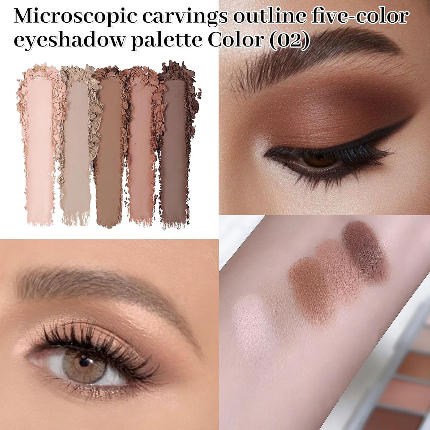 Neutrale Nude-Bruin Oogschaduw-Palet Make-up, 5 Kleuren fluweelzachte matte afwerking, koel getinte Nude-Taupe oogschaduw, natuurlijk voor dagelijks gebruik, langdurig, 02#